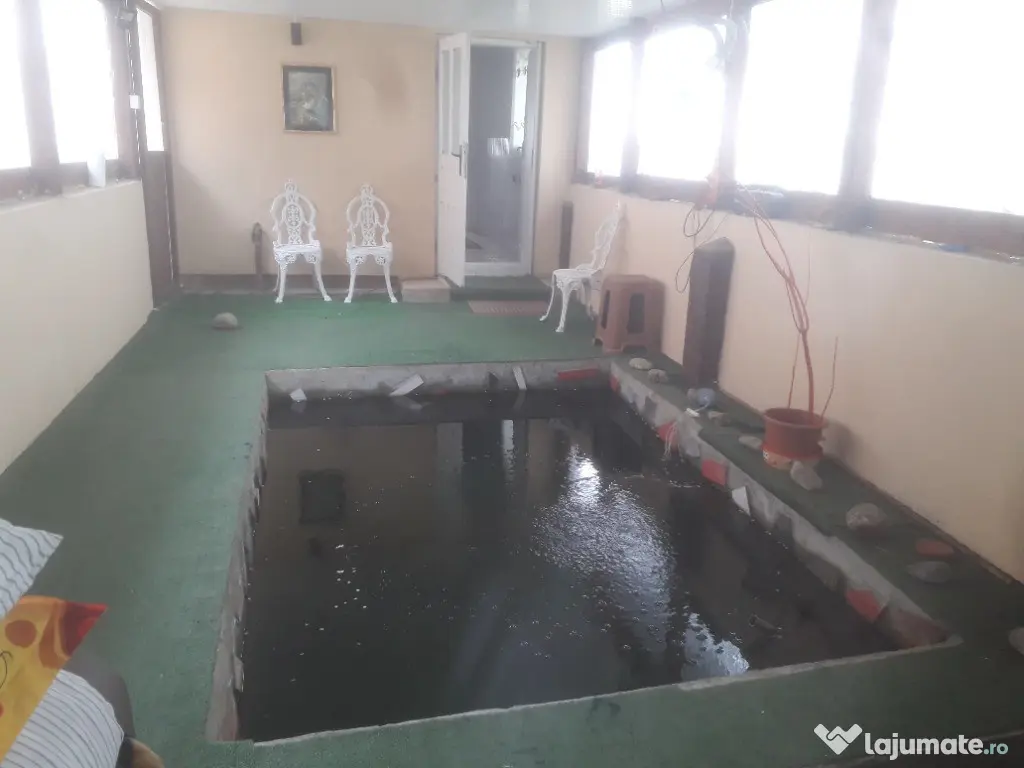 Agentia imobiliara Family va ofera spre vanzare o casa ( P+M ) din bca, constructie 2004-2005, suprafata locuibila este de 280 mp iar terenul pe care este construita casa are suprafata de 2000 mp, imprejmuita cu gard de tabla si pe laterale cu panouri bordurate, acoperita cu tabla Lindab, cu anexe ( casa batraneasca ), spatii pentru depozitare, terasa, un mic iaz cu pesti, incalzirea se realizeaza cu centrala pe lemne. ( ID 1418 )