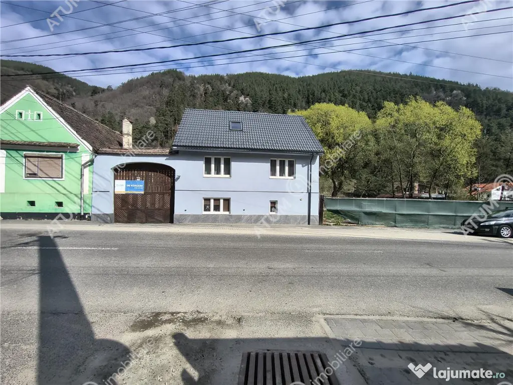 Va recomand o oportunitate unica de cumparare, situata intr-o zona turistica de munte, in pitoreasca comuna Gura Raului din Marginimea Sibiului. Este vorba despre o casa saseasca, complet renovata si modernizata, aceasta este inconjurata de vegetatie din abundenta si un peisaj montan impresionant, toate acestea la doar 20 minute distanta de Sibiu. Proprietatea detine 373 mp teren si este impartita in 2 corpuri de cladire, astfel: Primul corp stradal reprezinta casa de locuit, aici sunt 3 niveluri, si anume: la demisol se afla un living deschis cu bucataria complet mobilata si dotata cu electrocasnice, loc de luat masa si o camara, la parterul inalt al casei se afla un hol, 2 camere si o baie cu dus walk in iar la mansarda a fost amenajata inca o camera generoasa si o baie de serviciu. Langa casa mai beneficiati si de o bucatarie de "vara" cu acces din curte (aici se afla o soba cu plita si cazan traditional). Primul corp insumeaza 110 mp utili, interiorul este primitor si luminos, oferind un ambient cald si elegant, perfect atat pentru locuinta permanenta cat si ca resedinta de vacanta sau investitie agroturistica. Corpul al doilea are amprenta de 85 mp si este compus din mai multe anexe (sura traditionala, complet refacuta cu acces la diverse spatii pentru depozitare, terasa acoperita, garaj cu saht si magazie), in continuare se afla o gradina cu pomi fructiferi si loc de joaca, aici beneficiati de iesire la o alta strada si la Racirc;ul Cibin. Casa a fost complet renovata in ultimii ani, cu mare atentie la detalii, au fost pastrate elemente arhitecturale originale - grinzi si scari din lemn masiv, ziduri solide si accente rustice- completate de finisaje moderne. Proprietate dispune de izolatie termica si fonica la exterior, drenaj cu hidroizolatie, acoperis complet nou, tigla Bramac cu sistem pluvial, pavaj din piscoturi in curte, instalatii electrice si sanitare noi, pereti tencuiti, gletuiti si zugraviti in lavabila, usi si geamuri cu tamplarie pvc la exterior, ferestre Velux la mansarda, 3 sobe reconditionate din terocota, semineu, boiler Ariston, usi din lemn la interior, parchet laminat, gresie si faianta. Comuna Gura Raului are o bogata mostenire culturala iar locatia de poveste se incadreaza perfect in peisajul autohton, fiind situata la doar 18 km de Sibiu, la poalele Muntilor Cindrel. Descopera farmecul autentic al acestei case sasesti traditionale, imbinat armonios cu confortul modern. Situata intr-o zona pitoreasca de munte, aceasta proprietate unica ofera liniste, aer curat si un peisaj natural deosebit, ideal pentru cei care cauta refugiu departe de agitatia orasului. Daca vrei sa te convingi, te astept cu incredere sa programam o vizionare! Pretul de vanzare este de 129.000 euro negociabil. ID intern: 3451. Număr Băi: 2 Posibilitate parcare: Da Nr. locuri parcare: 5-10 Curent Apă Canalizare Demisol