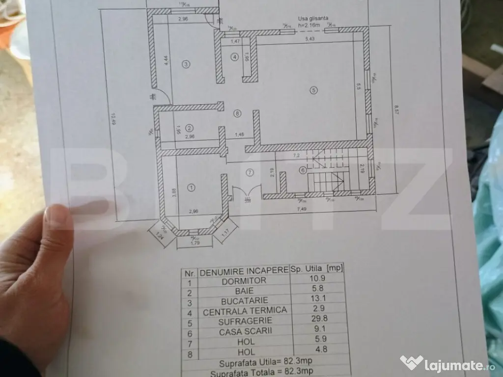 Blitz va propune spre vanzare o casa semifinisata in Ploiestiori la 3 minute de primarie. Contine 5 camere, 3 bai, living mare, bucatarie separata, 3 intrari, 2 balcoane. Etaj 81.85 mp utili, parter 82,3 utili, mansarda 90 mp, 2 balcoane 12 mp. Casa este facut cu inginer de santier, se poate veni cu oricine pentru verfificare. Fundatie 1,85 m aprox 8-9 tone fierbeton, caramida de 25 mp, pereti interior de 30 cm doar caramida, instalatie electrica facuta, incalzire in pardosea pe fiecare nivel, camera tehnica, termopane tripane. Casa este racordata la gaz , electricitate , canalizarea este la poarta . Pretul este foarte putin negociabil, va asteptam cu drag la vizionare! Cod ofertă / ID BLITZ: P136336 Id intern: P136336 Număr niveluri imobil: 2 Număr Băi: 3 Nr. locuri parcare: 2 Curent Apă Gaz