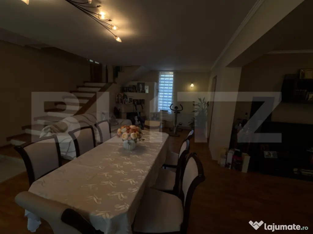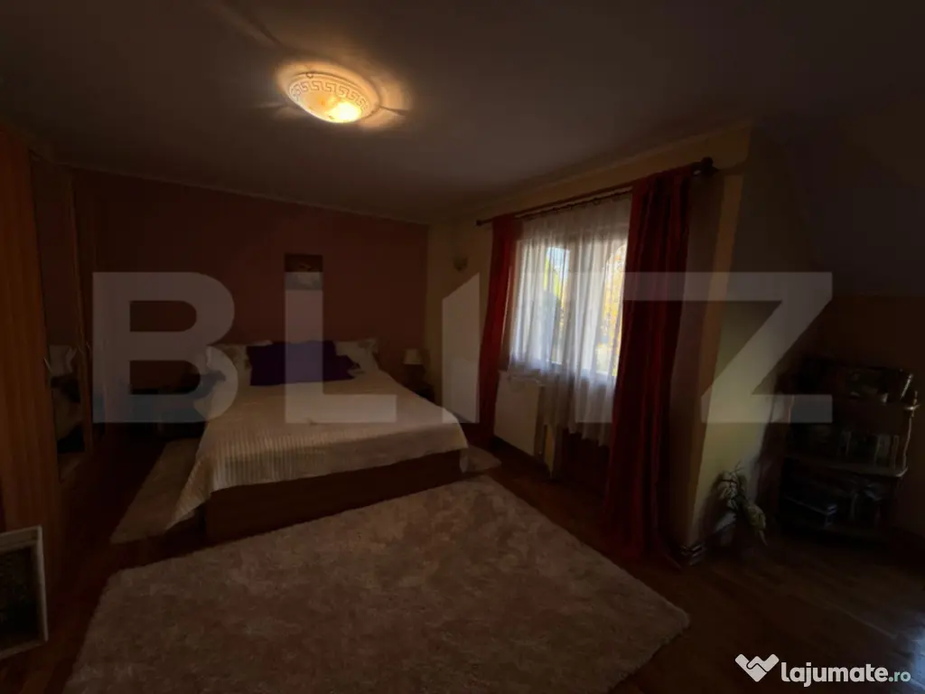 Vă prezentăm spre vânzare o casă impunătoare de tip S+P+1E+M, amplasată pe un teren de 776 mp, într-o zonă liniștită și bine poziționată. Proprietatea este versatilă, fiind compusă din două corpuri de clădire unite printr-un hol, ceea ce o face ideală pentru două familii sau pentru o familie numeroasă care își dorește intimitate și spațiu. ???? Detalii proprietate: Suprafață utilă totală: 300 mp Structură: Subsol + Parter + Etaj + Mansardă Compartimentare: ???? Corpul din față: Parter: living spațios, baie Etaj: 3 dormitoare, fiecare cu balcon propriu + baie comună Garaj cu intrare din strada si cu acces direct în demisol Demisol generos, uscat, ideal pentru depozitare sau amenajare suplimentară ???? Corpul din spate: Un singur nivel, compartimentat în bucătărie open-space cu zonă de dining, 2 dormitoare decomandate și o baie Terasă acoperită de 20 mp cu vedere spre grădină ???? Curte și teren: Suprafață totală teren: 776 mp Zonă de grădină amenajată cu gazon și pomi fructiferi Curte îngrijită, cu spațiu verde și locuri de relaxare ⚙️ Dotări și beneficii: ✔️ Izolație exterioară de 10 cm ✔️ Sistem de supraveghere video ✔️ Mansardă neutilizată, cu potențial de amenajare ✔️ Garaj integrat + spațiu de parcare exterior ???? O casă cu personalitate Această proprietate oferă spațiu, confort și intimitate, fiind perfectă pentru cei care caută un cămin generos și flexibil sau o investiție pe termen lung. ???? Contact: pentru detalii suplimentare și programarea unei vizionări, nu ezitați să mă contactați. Cod ofertă / ID BLITZ: P156609 Id intern: P156609 Număr niveluri imobil: 2 Număr Băi: 3 Nr. locuri parcare: 3 Curent Apă Canalizare Gaz