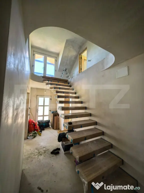 Parter: living spațios, bucătărie, baie, 2 dormitoare, cameră tehnică