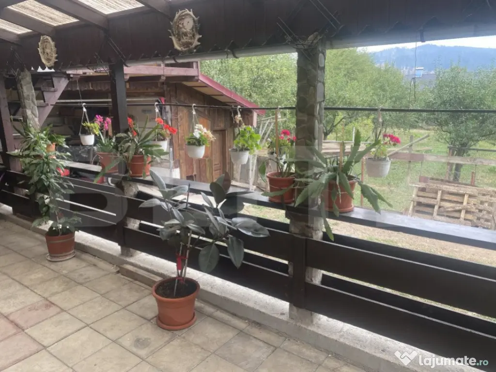 Blitz propune spre vânzare o casă tip vilă, foarte bine organizată, cu două terase, curte generoasă și grădină. Casa este situată într-o zonă ușor accesibilă a orașului Gura Humorului, lângă șosea asfaltată. Casa este cu 1 etaj și mansardă, are 8 camere, 4 băi, 2 terase, anexe exterioare de depozitare, curte și grădină cu pomi fructiferi, inclusiv viță de vie. Proprietatea este foarte frumos întreținută și curată, poate fi folosită pentru o familie mare sau în scop turistic. Vă invităm cu drag la vizionare! Cod ofertă / ID BLITZ: P132346 Id intern: P132346 Număr Băi: 4 Nr. locuri parcare: 4 Curent Apă Canalizare Gaz