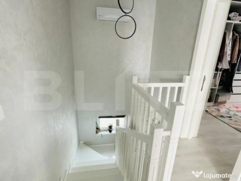 Blitz va ofera spre vanzare o casa deosebita in Rediu aproape de lac. Casa este construita din beton si caramida, cu un regim de inaltime Parter+Etaj. Suprafata utila de 100mp, pe un teren de 250mp + cota din drumul de acces. Compartimentare: Parter: living generos de 24mp, baie, bucatarie. Etaj: 3 dormitoare (unul cu functiune de dressing) si balcon. Finisaje de Calitate: Casa este complet finisata, mobilata si dotata cu gresie, faianta, parchet de calitate superioara. Tamplarie PVC de inalta calitate cu geam termopan, marca Schuco. Izolatie termica de 10cm. Dotari si Mobilier: Bucatarie echipata cu electrocasnice de calitate (frigider LG wifi, masina de spalat vase, inductie, cuptor electric, hota - toate de la Beko). Baie utilata cu masina de spalat rufe LG wifi - 9KG si uscator Arctic - 9 KG. Mobilier realizat in mare parte la comanda, cu piese de la Mobexpert si Ikea. 2 televizoare Philips Ambilight OLED, aer conditionat de 18000 btu Gree cu wifi. Sisteme si Utilitati: Centrala termica. Poarta automatizata. Racordare la toate utilitatile zonei: gaz, curent, apa si canalizare oras. Confort Suplimentar: Proprietatea ofera confort suplimentar prin aerul conditionat, tehnologia wifi la electrocasnice si televizoare, precum si poarta automatizata pentru acces facil. Invitatie la Vizionare: Va invitam cu drag la vizionare pentru a aprecia personal toate facilitatile si detaliile oferite de aceasta proprietate. Cod ofertă / ID BLITZ: P100506 Id intern: P100506 Număr niveluri imobil: 1 Număr Băi: 2 Nr. locuri parcare: 2