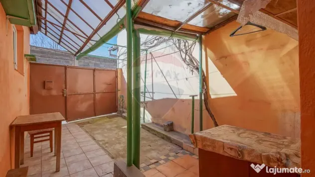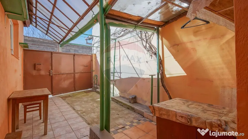 Terenul aferent casei este de 112 mp și permite fie amenajarea unei curți micuțe și cochete, fie parcarea mașinii, în funcție de preferințe.