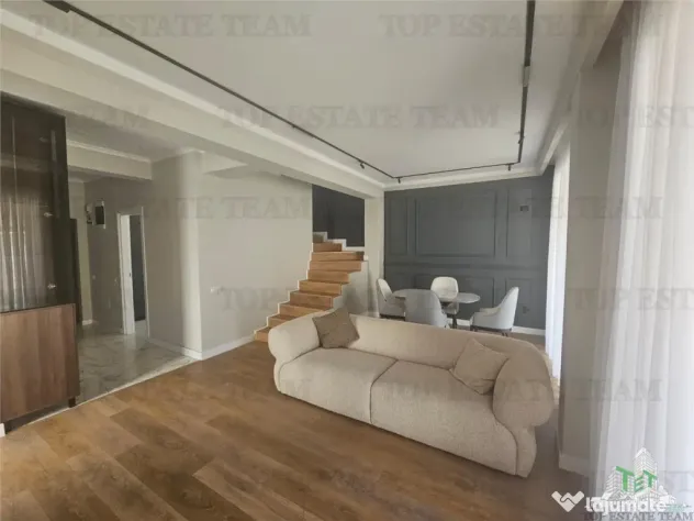 Compartimentare: hol, bucatarie inchisa, spatiu depozitare, casa scarii, grup sanitar, living 24mp cu iesire pe terasa 19.2mp la parter; hol, baie, casa scarii, 3 dormitoare (1 matrimonial cu baie proprie si balcon)