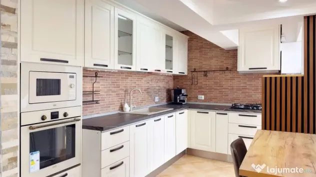 Bucătărie complet mobilată și utilată cu electrocasnice noi.