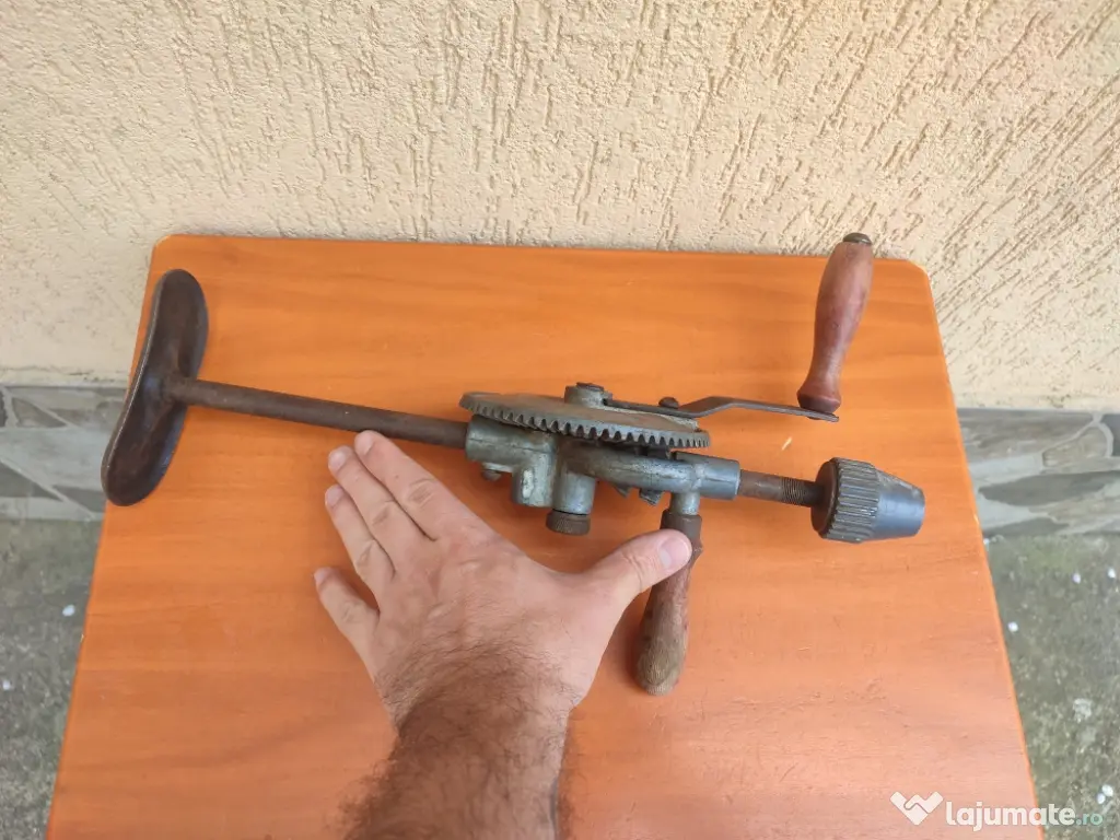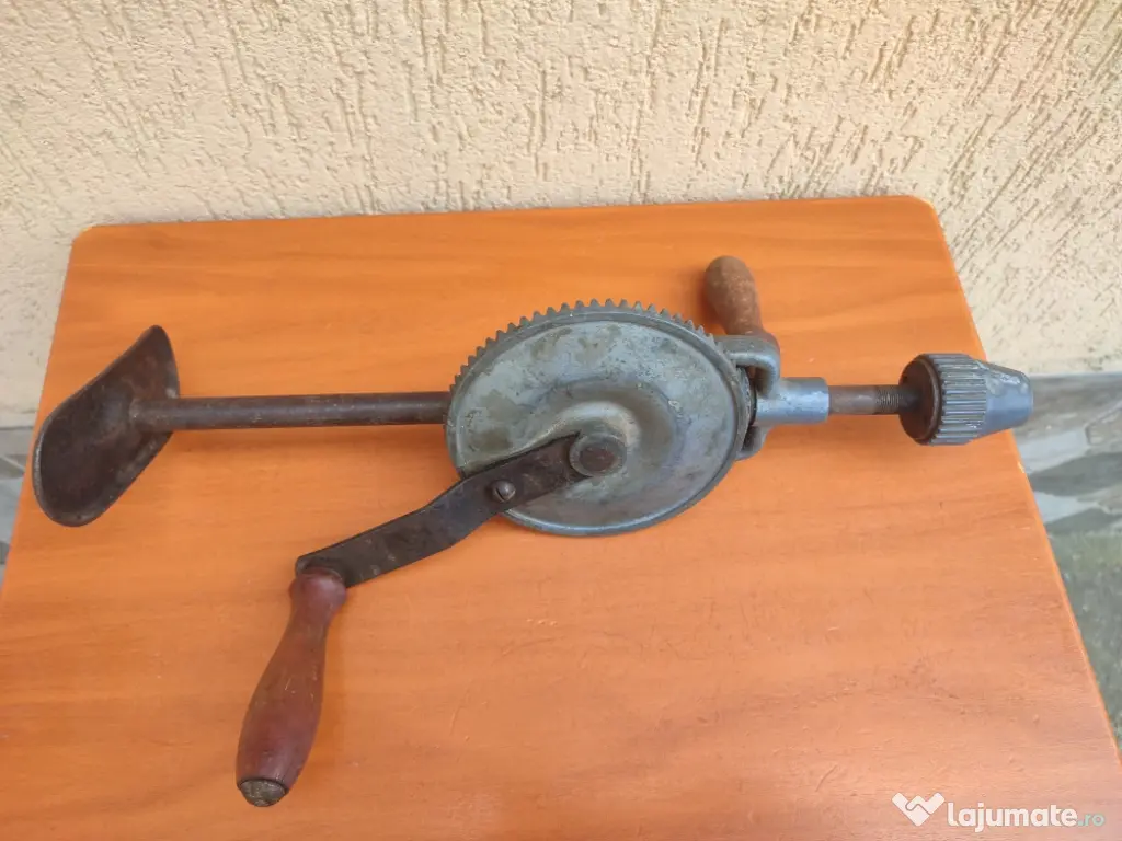 Vând coarbă (bormașină manuală) mare cu doua viteze, perfect funcțională. Starea din poze. Corpul este din metal, iar mânerele sunt din lemn.