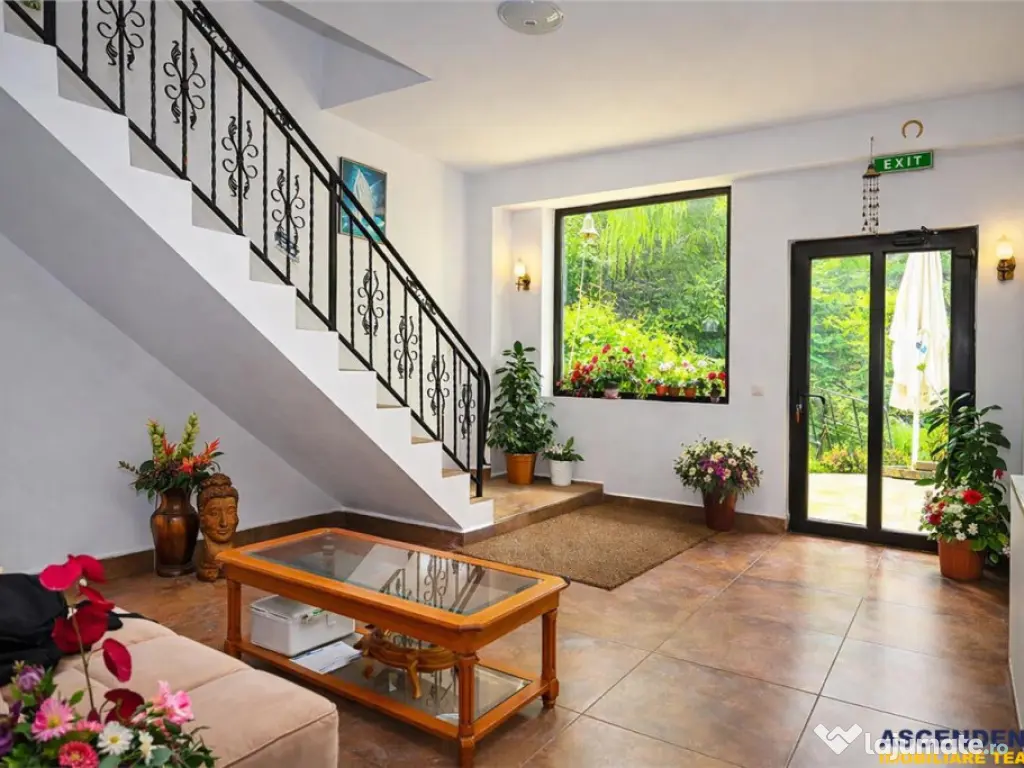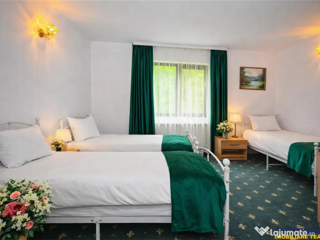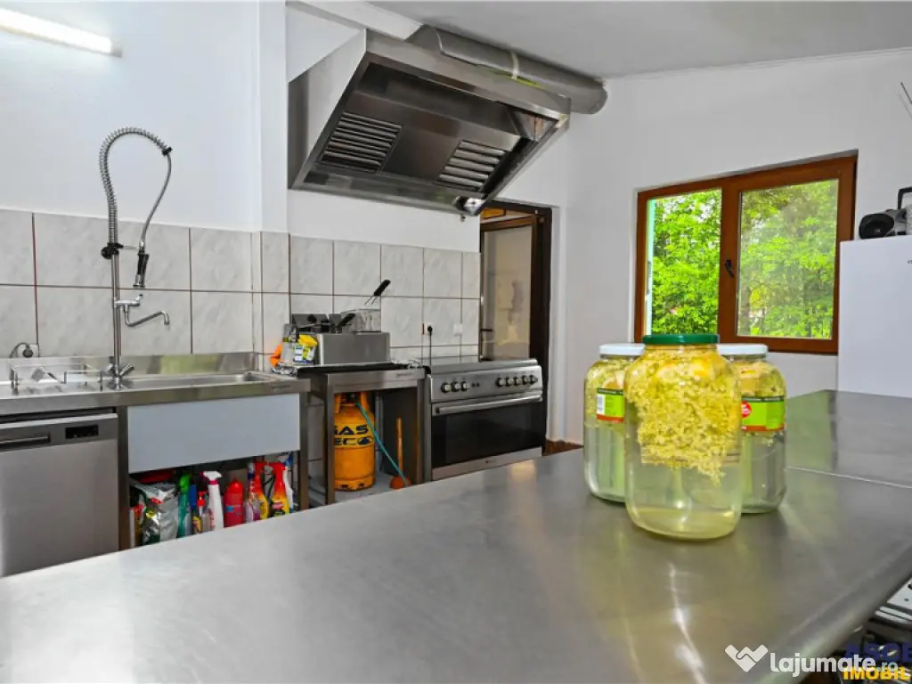 Comision 0% la cumparator ASCENDENT IMOBILIARE BRASOV, ofera spre vanzare un complex turistic cu traditie, aflat in circuit din 2007, situat in Rezervatia naturala Piatra Craiului, mai exact pe superbul drum spre Plaiu Foii. Cu vedere panoramica la creasta Pietrii Craiului, intr-un peisaj natural de exceptie, complexul este destinatia ideala petru turism montan, dar si pentru concedii de relaxare sau team buiding. Renovat integral in 2023 complexul are eficienta energetica de ultima generatie: Prosumator cu panouri fotovoltaice de 15 KW invertor 5 panouri solare pentru apa calda pompa de caldura Generator de backup pentru siguranta In mijlocul unui teren amenajat de 7700 mp, structura complexului se prezinta astfel- Vila pensiune Parter - sala de curs, salon, sala de mese, bucatarie, 2 bai - centrala noua Etaj 1 - 5 camere cu bai proprii si 3 balcoane Etaj 2 - 3 camere 1 apartament, toate cu baie proprie Vila 2 - incalzire cu pompa de caldura si cenrala pe lemne Living, bucatarie, 2 bai, 3 dormitoare Vila 3 4 camere, 2 bai, garaj de 100 mp, spati depozitare Ca utilitati mentionam- 3 surse de curent = a)de la reteaua nationala, b) sistem fotovoltaic 15 kw c)generator diesel 10KVA 2 surse de apa de la 3 fantani si un izvor- capacitate de stocare 3 tone 2 surse apa calda - instalatie solara cu tuburi vidate si centrale pe lemne Dotari - sistem supraveghere,internet, cablu TV, detectoare incendiu. Suplimentar mai sunt avem o magazie de combustibili si depozitare materiale. Fiind un complex cunoscut si integrat in circuitul turistic, investitia se poate prelua ca o afacere la cheie. Consilier specializat pe aleasa oferta: doamna Lucia Demco Telefon/ WhatsAp: 0720689222 Detalii, fotografii suplimentare si alte oferte similare exclusive: www.ascendentimobiliare.ro An finalizare construcție: 2007 Stadiu construcţie: Finalizat Număr încăperi: 22 Comision cumpărător: 0% Posibilitate parcare: Da Nr. locuri parcare: 10-20