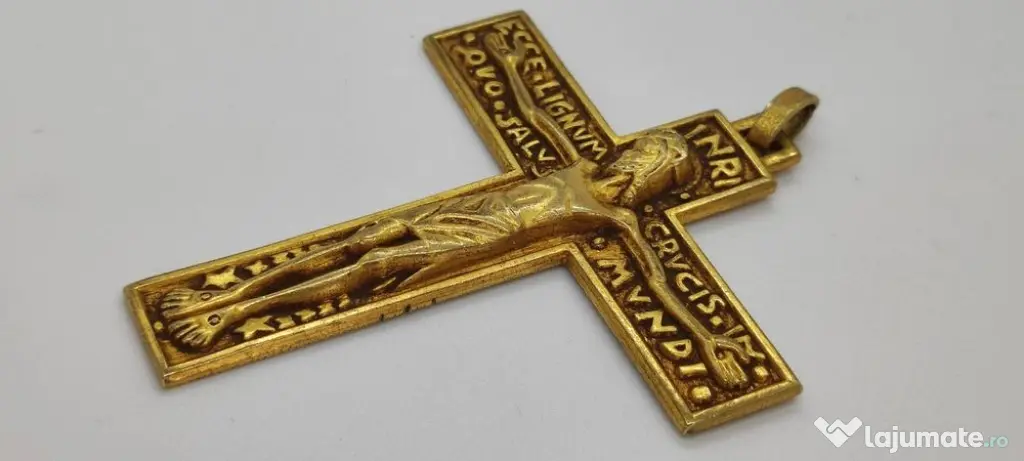 Cruciuliță veche din metal aurit.Dimensiuni în poze.Preț 40 lei plata în cont raiff.expediere cu poșta 15 lei.