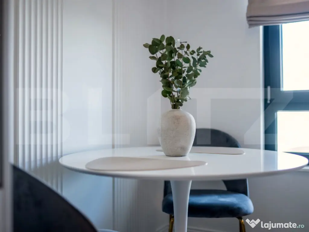 BLITZ vă propune spre închiriere un apartament exclusivist, situat într-un ansamblu de referință, poziționat lângă cel mai important centru comercial din Cluj-Napoca – Iulius Mall. În imediata vecinătate a imobilului regăsim Facultatea FSEGA, ansamblul de birouri Iulius Business Center, precum și parcul de agrement Iulius Park. Detalii: - 53 mp utili – compartimentare ideală, în stil decomandat: hol, bucătărie separată, living, dormitor, baie și balcon tip lounge de 8 mp, perfect pentru relaxare - Complet mobilat și utilat premium, inclusiv electrocasnice încorporate și Smart TV - Finisaje moderne și spații generoase de depozitare - Parcare subterană, cu acces direct prin lift - Vedere panoramică către lac Poate fi utilizat și ca apartament de protocol, fiind disponibil imediat. BONUS: pe lângă parcarea subterană, în prețul chiriei este inclusă si o curățenie profesională lunară. Nu se acceptă animale de companie. Un apartament care îmbină eleganța, confortul și o locație premium. Contactați-ne pentru detalii și programarea unei vizionări! Cod ofertă / ID BLITZ: P161352 Id intern: P161352 Confort: 1 Tip imobil: 4 Număr Băi: 1