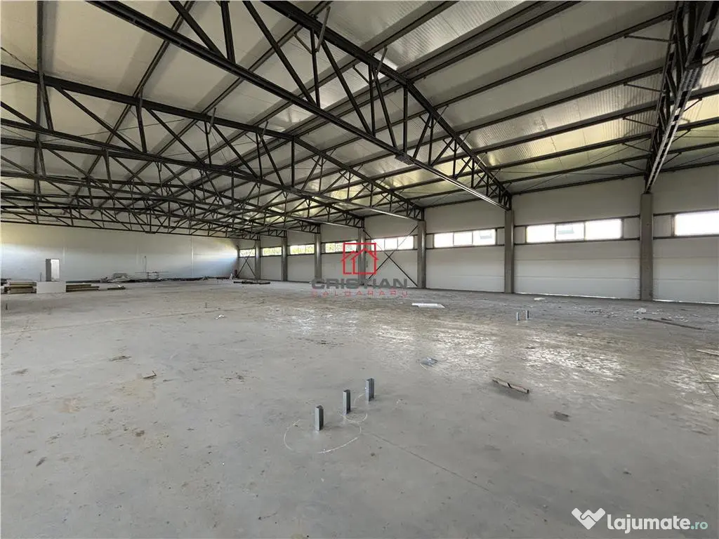 Inchiriere depozit/hala/spatiu industrial Chitila - Centura, Ilfov. Imobil are curte/platforma betonata 3.000mp, suprafata otala 1.800mp(hale - 1.600mp, birouri - 200mp), inaltime 5ml, dispusa parter, accesul se face prin 3 usi tip drive in. Spatiu este construit din structura beton/metalica si panouri sandwich. Spatiul dispune de facilitati: bransament curent electric 100KWA, canalizare (fosa ecologica), apa(retea publica). Spatiul se preteaza pentru activitati industriale/logistice/depozitare. Spatiul dispune de locuri de parcare in curte. Disponibil in 30 de zile din momentul semnarii unui contract de inchiriere. Pret ndash; 9.000euro/luna tva COMISION AGENTIE 50-100% din prima luna de chirie Suprafaţă totală: 1800 m² Suprafaţă birouri: 1800 m² An finalizare construcție: 2024 Stadiu construcţie: Finalizat Înălţime spaţiu: 3 m Număr încăperi: 10 Număr Grupuri Sanitare: 4 Tip imobil: Producţie/Servicii