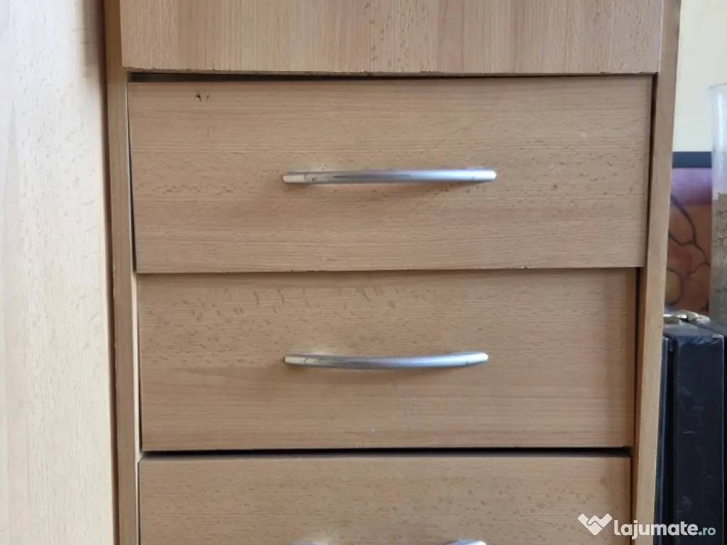 Dulapul este folosit, prezintă semne de uzura, ultimul sertar nu e prins de suporți (se poate vedea si in imagine). O parte din spatele dulapului a foat înlocuit (se poate vedea in imagine).