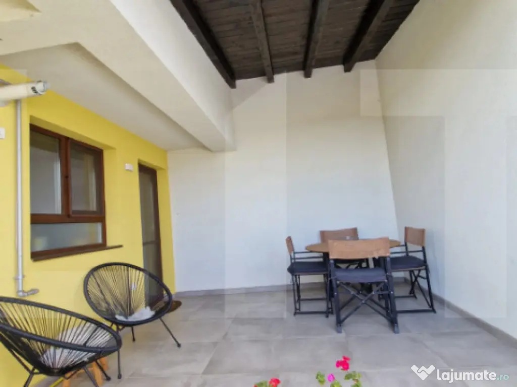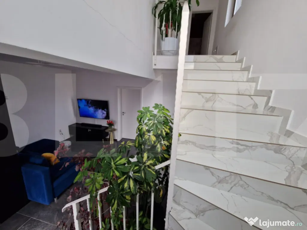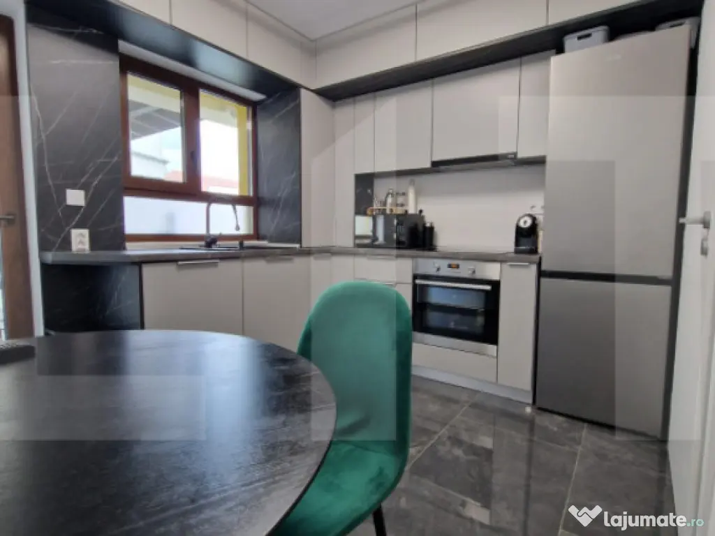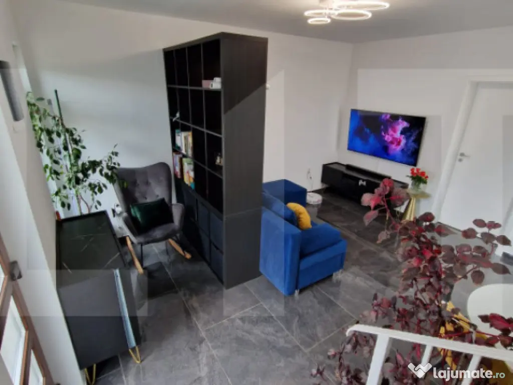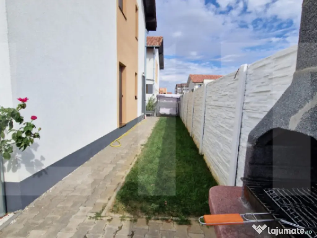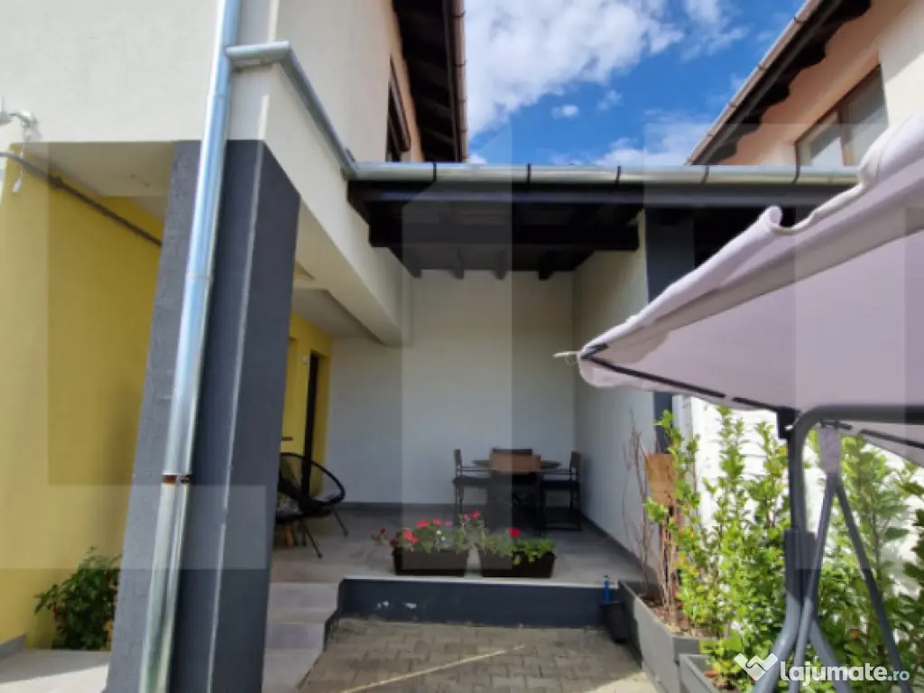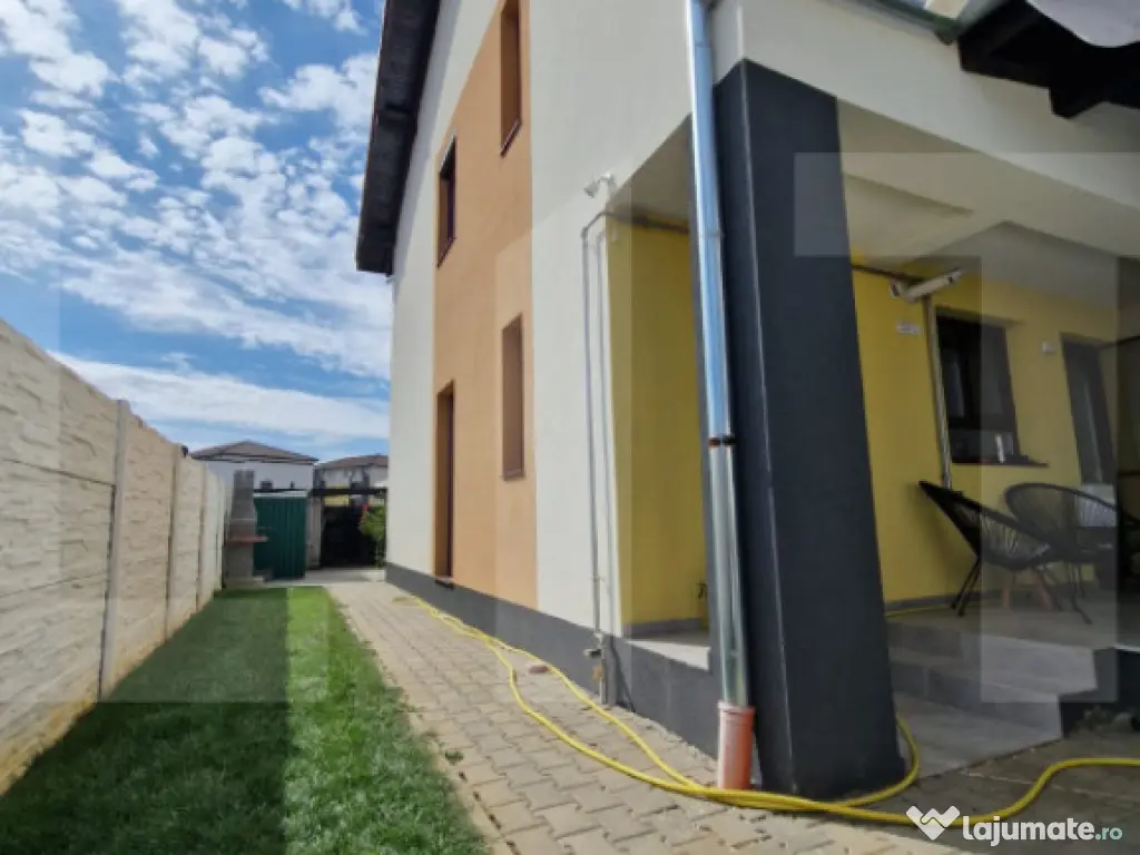 Blitz Imobiliare vă propune spre vânzare un duplex modern, construit în 2023, situat într-o zonă liniștită și în plină dezvoltare – Calea Urseni, strada Gălbenelelor, Giroc. Detalii generale: An construcție: 2023 Suprafață utilă: 76 mp Terasă acoperită: 15 mp (dotată cu masă și scaune) Suprafață teren: 150 mp Parcare: 3 locuri în fața casei Regim de înălțime: P + 1 + pod (placă de beton peste etaj) Compartimentare: Parter: Living Bucătărie separată Baie Debara Etaj: Hol 2 dormitoare (unul cu balcon) Baie Pod: Izolat cu polistiren 20 cm Dotări și facilități: Încălzire în pardoseală (centrală pe gaz, 6 termostate independente) Aer condiționat Rulouri + camere de supraveghere Terasă acoperită complet utilată Curte amenajată, grătar Se vinde complet mobilat și utilat Mobilier și electrocasnice incluse Living: canapea extensibilă, balansoare, masă + scaune, bibliotecă, comodă Bucătărie: mobilier la comandă, mașină de spălat vase, plită inducție, cuptor, hotă, frigider, masă + scaune, TV Baie parter: duș Debara: mașină de spălat rufe Dormitor cu balcon: TV, birou, dulap Dormitor matrimonial: pat 180x200, noptiere, dulap, comodă Baie etaj: cadă Utilități: Curent electric Gaz Apă de la rețea Canalizare Fibră optică – TV + internet Alte informații: Casa este locuită, dar se poate elibera imediat Se acceptă credit imobiliar În apropiere: Zone 2, Centura Timișoara, supermarketuri (Mega Image, Profi), farmacie, Continental Stația de autobuz la 400 m Pentru mai multe detalii sau programarea unei vizionări, nu ezitați să ne contactați! Cod ofertă / ID BLITZ: P158082 Id intern: P158082 Număr niveluri imobil: 1 Număr Băi: 2 Nr. locuri parcare: 3 Curent Apă Canalizare Gaz Climă