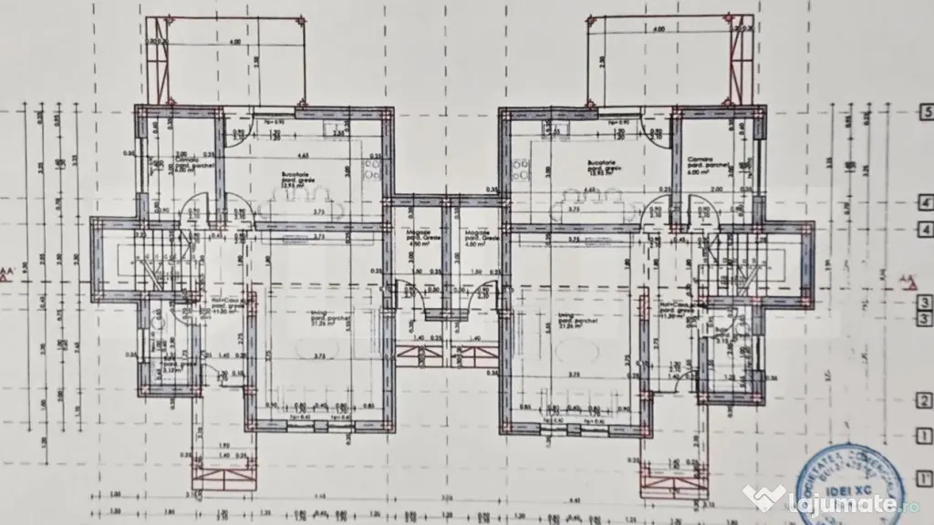 Imobilul este unul de tip duplex, proiectat pe un plan P+1, intre locuinte exista cate o camera tehnica, fiind unicul element de legatura.