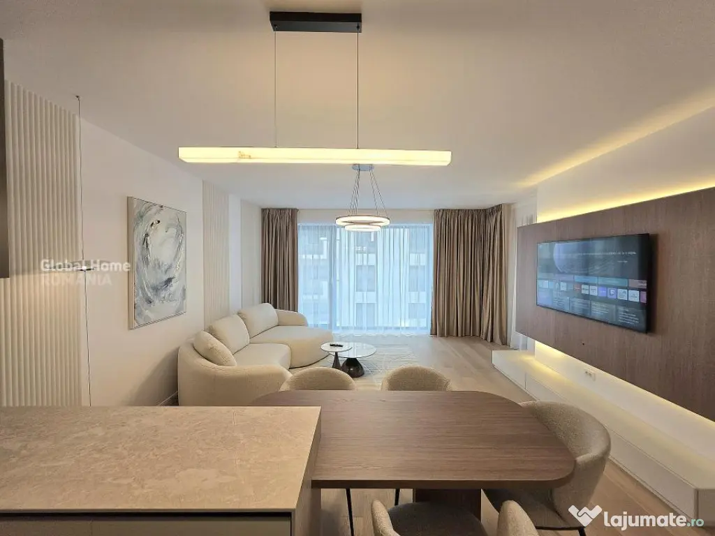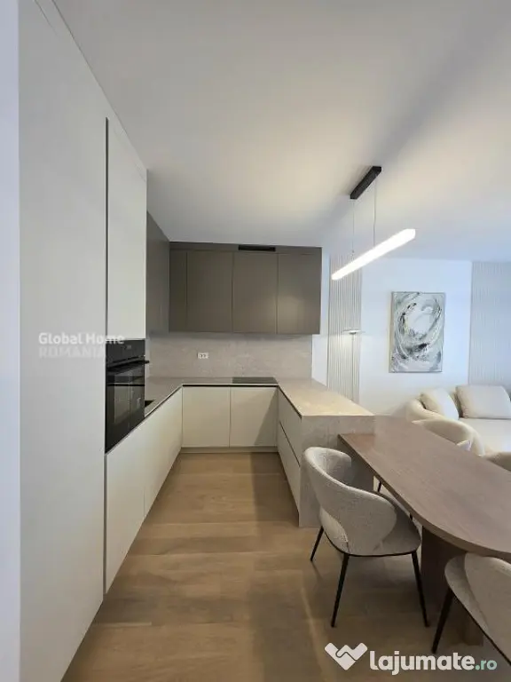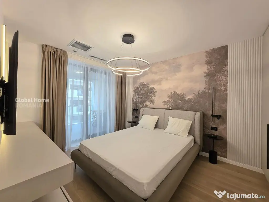 Apartament 2 camere, 71 mp utili + terasă deschisă, parcare inclusă. Prima închiriere, finisaje de design arhitectural, mobilat complet, încălzire în pardoseală, sistem AC.