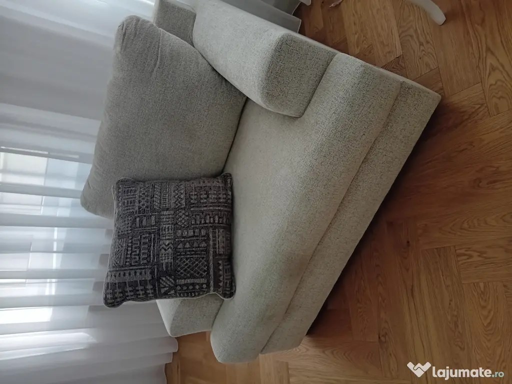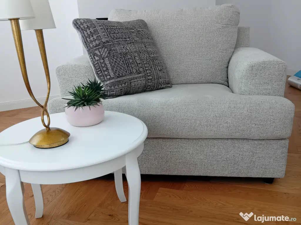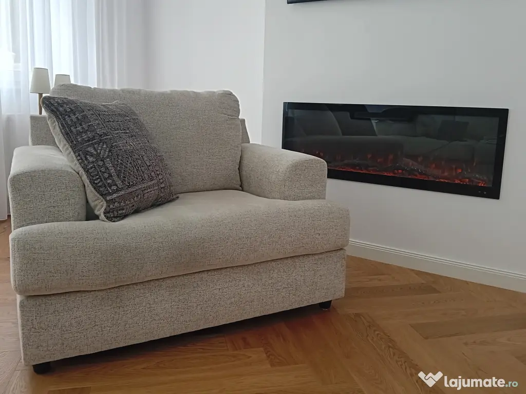 Fotoliul are 2 perne decorative.