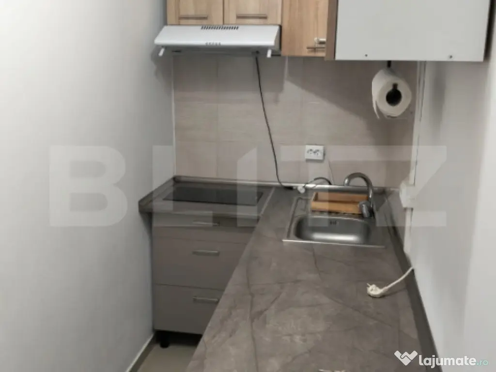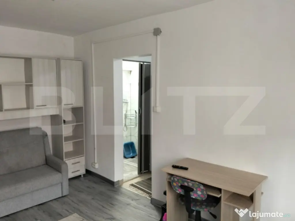Blitz Imobiliare vă prezintă o garsonieră cochetă și complet renovată, situată pe Bulevardul Poitiers.Proprietatea este situată la parter, având o suprafață de 22 mp optimizată pentru un confort maxim. Interiorul a fost complet renovat cu finisaje moderne, incluzând: o cameră de zi, mobilată mși pregătit pentru locuit. Bucătărie și baie utilate complet, cu instalații noi.Se vinde mobilată și utilată complet nou, deci nu necesită nicio investiție suplimentară din partea dumneavoastră. Vă steptam cu drag pentu vizionari! Cod ofertă / ID BLITZ: P170373 Id intern: P170373 Confort: 1 Tip imobil: Bloc de apartamente Număr Băi: 1