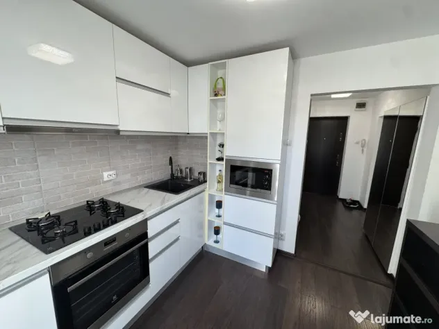 se inchiriaza garsoniera superba, mobilata in stil modern situata la etajul 6 al unui bloc de 7 nivele pe Strada Theodor D. Sperantia 135, in spatele Bulevardului Decebal, la doar 4 minute de mers pe jos pana la Metrou Piata Muncii, si 7 minute pana la bulevardul Unirii. Cu o suprafata de 37 m2, garsoniera va intampina cu finisaje si mobila de buna calitate. In dormitor se afla un dressing generos, inalt pana in tavan si lung de 3m, si un smart Tv urias cu diagonala de 150cm, dar si aer conditionat de ultima generatie + alte spatii de depozitare, inclusiv o biblioteca. In bucatarie exista plita din sticla neagra pe gaz, cuptor cu microunde incorporat, frigider, cuptor electric si trecere spre balcon. Pe hol este un pantofar generos ce are si o zona de umerașe. Toate electrocasnicele sunt electrolux sau samsung. Regasiti si masa de calcat, si cal de rufe, ca dumneavoastra doar sa va mutati imediat Ca si locatie, garsoniera se afla intr-o zona liniștita, cu vecini buni si cu portar care supravegheaza intrarea in bloc, iar scara este foarte curata fiind bloc construit in 1992, dar si reabilitat. Pentru loc de parcare puteti sa va achizitionati separat abonament la parcarea subterana de pe bulevardul Decebal. In imediata apropiere gasiti : Magazine, Cafenele/terase, Muzeul Copiilor, Parcul National 23 August. Va astept cu drag la vizionare ! Putem “negocia” daca aveti animale de companie sau sunteti fumatori iar aici nu ma refer la chirie, aceasta ar ramene aceasi, ci doar am discutat despre anumite conditii cat sa fie bine pentru toata lumea. Direct proprietar.