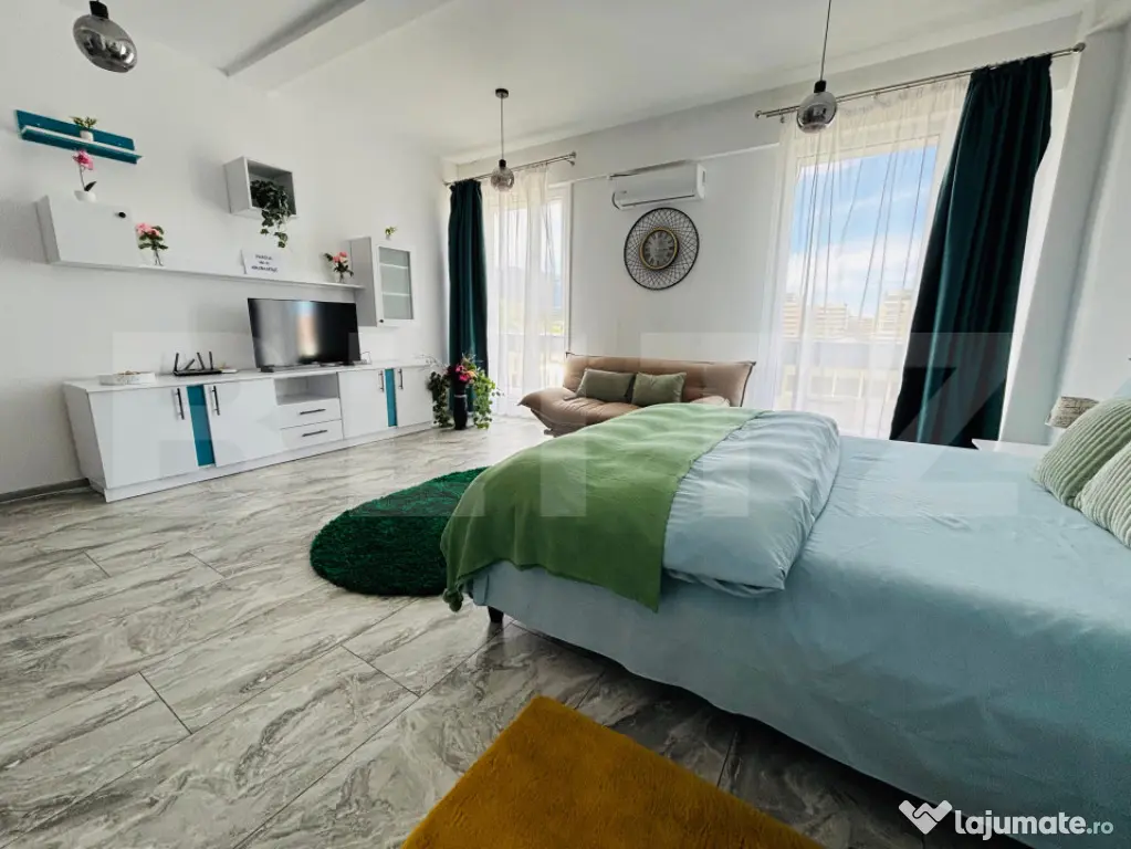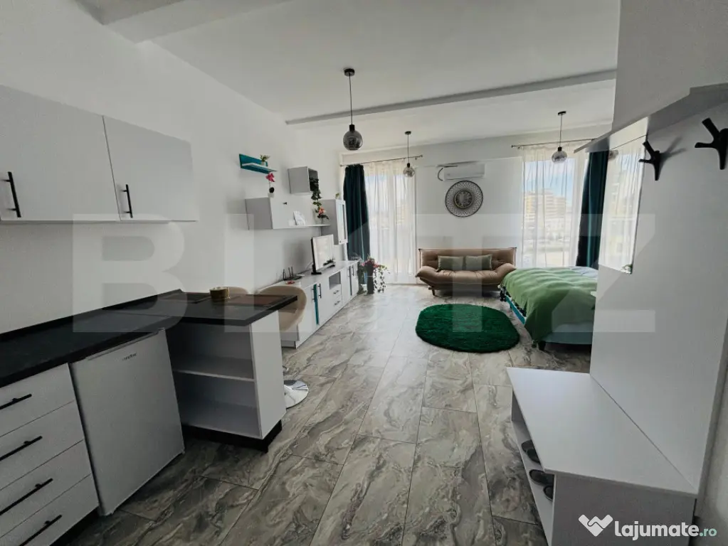 Garsoniera este amenajată cu atenție la detalii, complet mobilată și utilată, fiind pregătită pentru mutare imediată sau pentru continuarea activității în regim hotelier. Spațiul este eficient organizat, luminos și confortabil, oferind un ambient plăcut încă de la prima vedere.