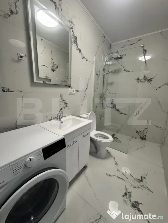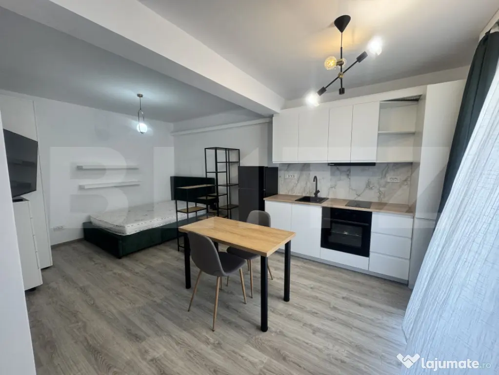 Dispune de finisaje moderne, mobilier de calitate și toate electrocasnicele necesare: frigider, mașină de spălat, plită, cuptor, TV. Spațiul este bine compartimentat, luminos și primitor, ideal pentru o persoană sau un cuplu.
