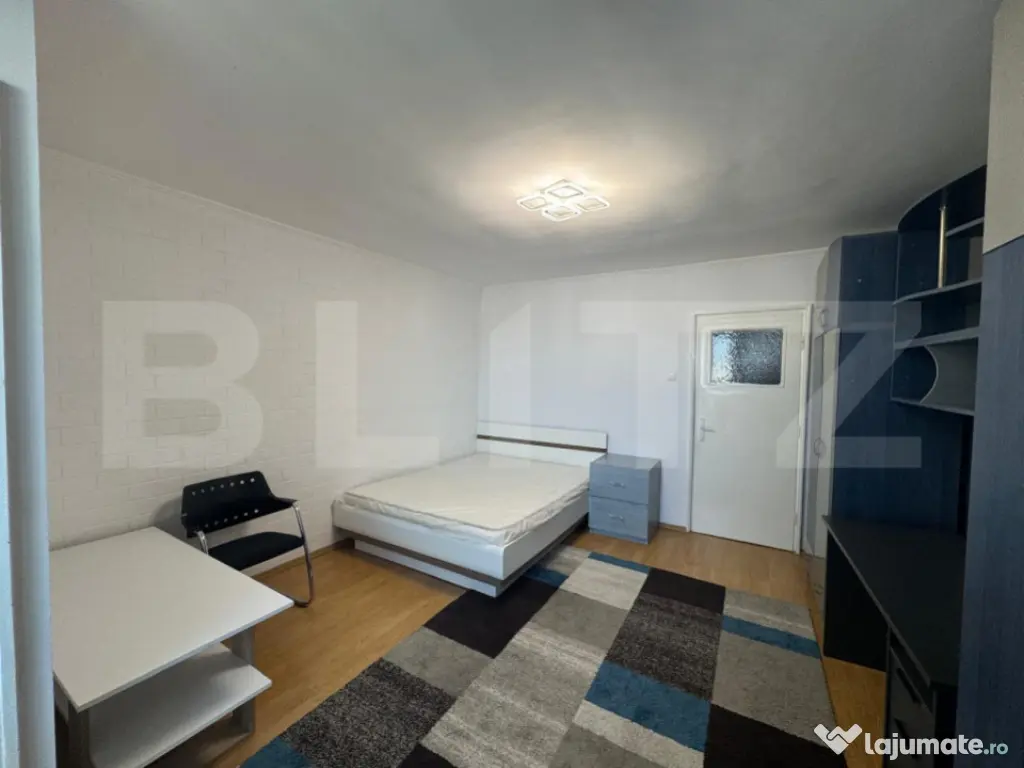 Blitz ofera spre inchiriere o garsoniera cocheta si primitoare, situata in cartierul Manastur, zona Minerva — una dintre cele mai cautate si bine conectate zone din Cluj-Napoca! Detalii proprietate – Suprafata utila: 32 mp – Etaj: 10 din 10 – Balcon cu panorama superba asupra cartierului – Imobil bine intretinut Garsoniera ofera un confort sporit si surprinde prin compartimentarea eficienta, luminozitate si privelistea deschisa asupra orasului. Compartimentare & dotari – Camera principala amenajata practic si confortabil, cu pat matrimonial, birou, doua dulapuri si multiple spatii de depozitare – Acces direct catre balcon, ideal pentru relaxare si pentru a te bucura de panorama asupra cartierului – Bucatarie complet mobilata si utilata: aragaz, cuptor, frigider, cuptor cu microunde si numeroase spatii de depozitare – Baie dotata cu cada si masina de spalat rufe Avantaje – Compartimentare foarte eficienta – Panorama deosebita datorita pozitionarii la ultimul etaj – Spatiu bine optimizat si confortabil – Proprietate ideala pentru o persoana sau un cuplu Localizare excelenta Pozitionata la doar cateva minute de mers pe jos de zona Minerva, proprietatea beneficiaza de acces rapid la statii de autobuz, magazine, parcuri si multiple facilitati urbane, oferind un stil de viata practic si conectat. Locatia, privelistea si functionalitatea fac din aceasta garsoniera o oportunitate excelenta in zona. Programeaza o vizionare si descopera un spatiu cochet, bine amplasat si gata de mutat! Cod ofertă / ID BLITZ: P170420 Id intern: P170420 Confort: 1 Tip imobil: Bloc de apartamente Număr Băi: 1