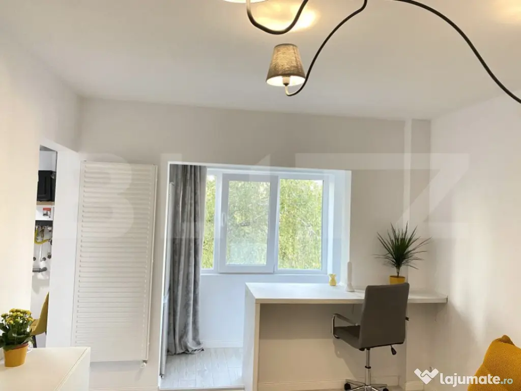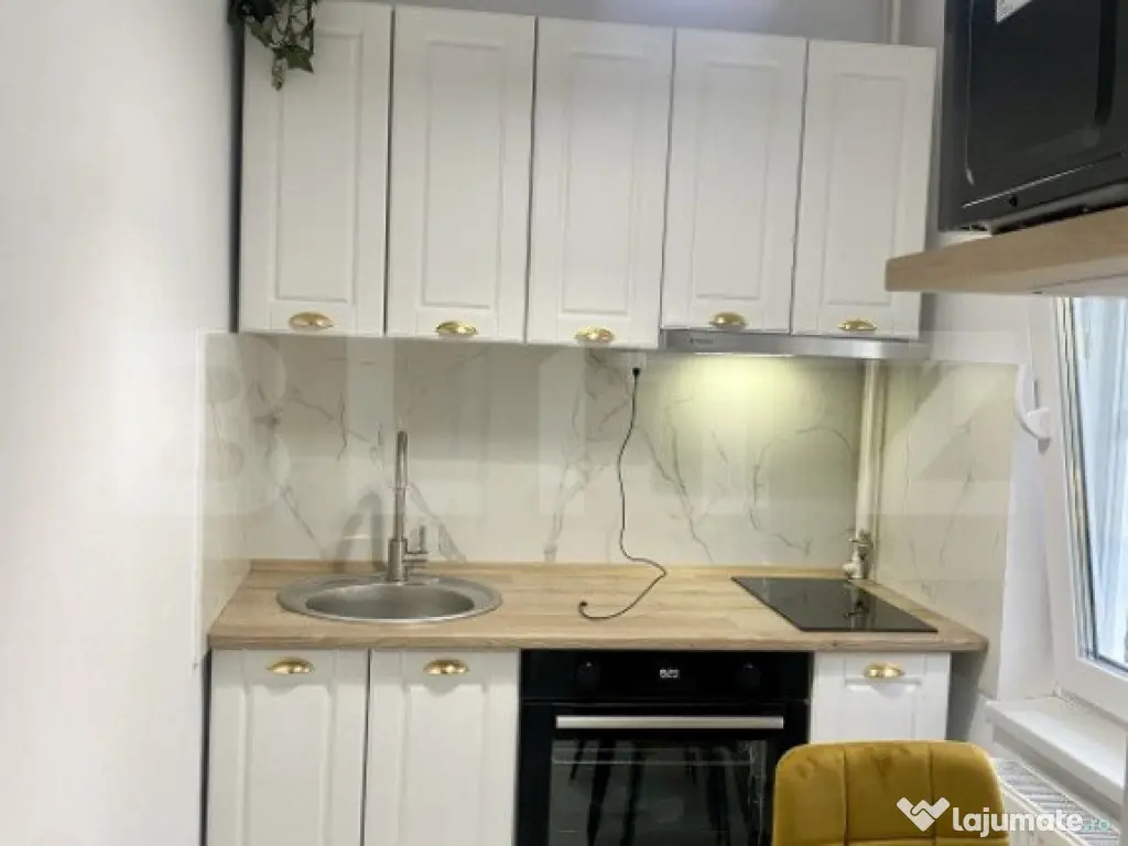 Imobilul este poziționat la etajul 2 din 4 având o suprafață utila de de 30mp. Compartimentarea acestuia este semidecomandat si este gândită astfel: Hol cu spațiu de depozitare, 1 camera cu pat dublu având o saltea premium cu memorie si un spațiu de depozitat , un birou si un fotoliu cu masaj de relaxare, bucătărie cu plita electrica si cuptor electric, hoter, cuptor cu microunde, baie cu dus si un balcon închis. Apartamentul este dotat cu mobilier de naltă calitate si electrocasnice top, totul fiind NOU. viitori chiriași vor beneficia de lenjerii noi, farfurii, tacâmuri, aspirator . La fel ținem sa menționăm ca facturile vor fii super ieftin fiind centrala termica proprie instalat cu condensare. Gama Ariston. Acesta este disponibil imediat. Te așteptăm la vizionare!