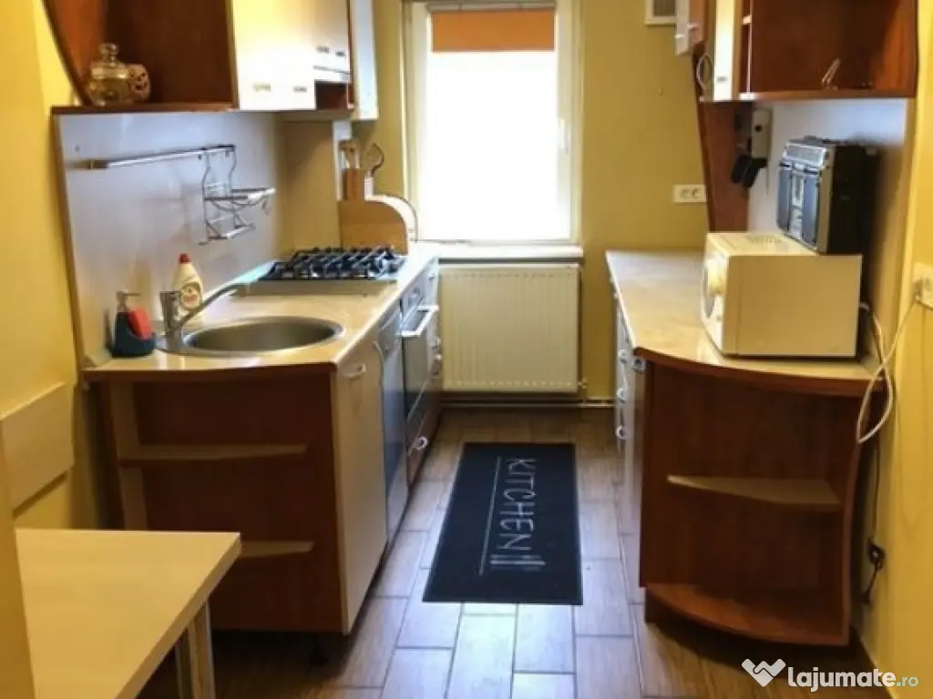 Inchiriez garsoniera, complet utilata (cuptor electric Electrolux, plita Electrolux, masina spalat vase Bosch, combina frigorifica Samsung, masina spalat rufe, uscator rufe Whirlpool, aer conditionat, televizor Samsung). Zona foarte linistita, etaj 3, 40mp. Confort: 1 Tip imobil: Bloc de apartamente