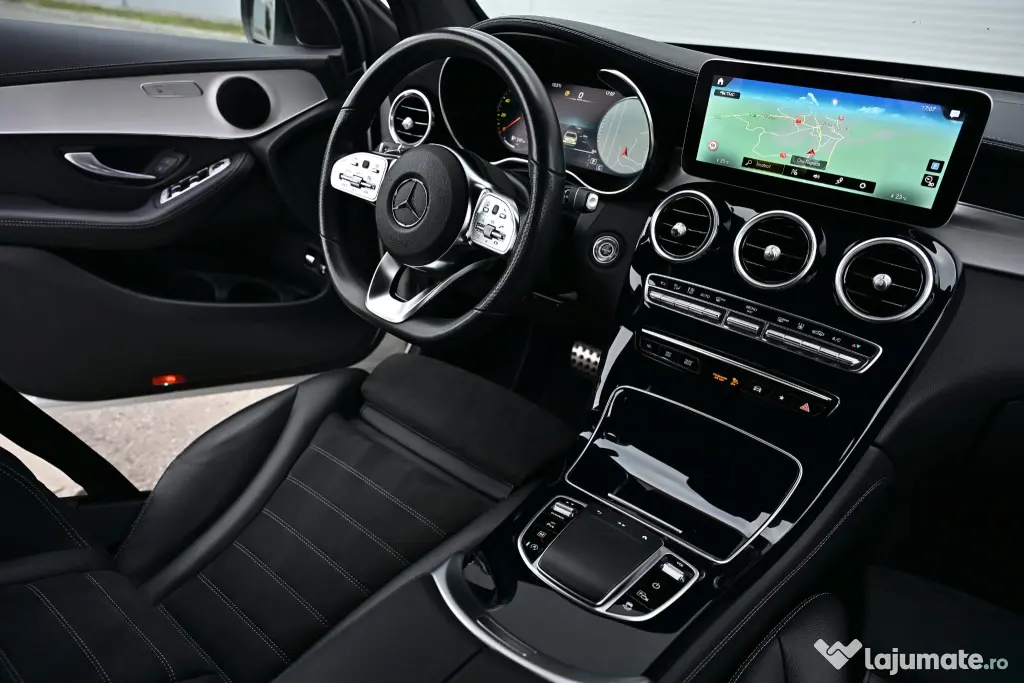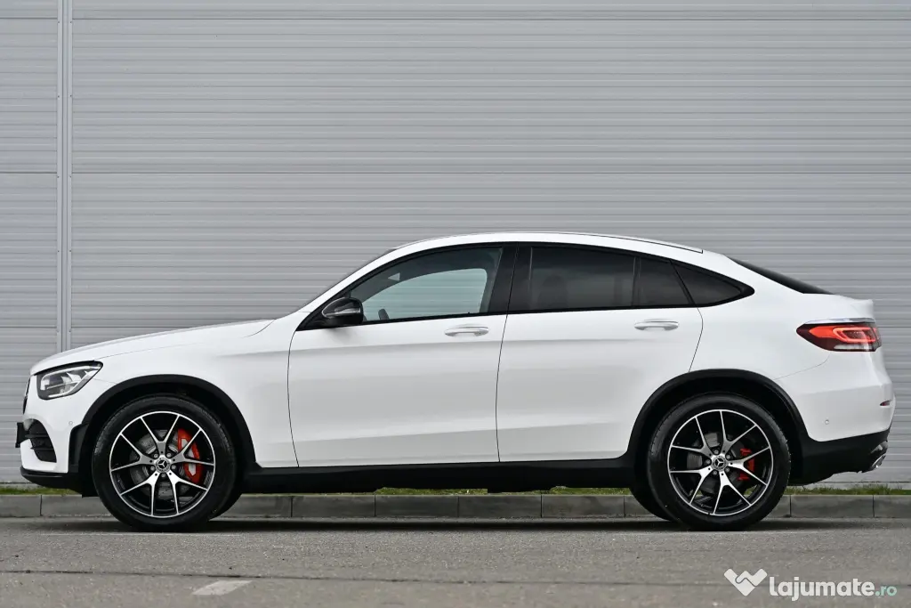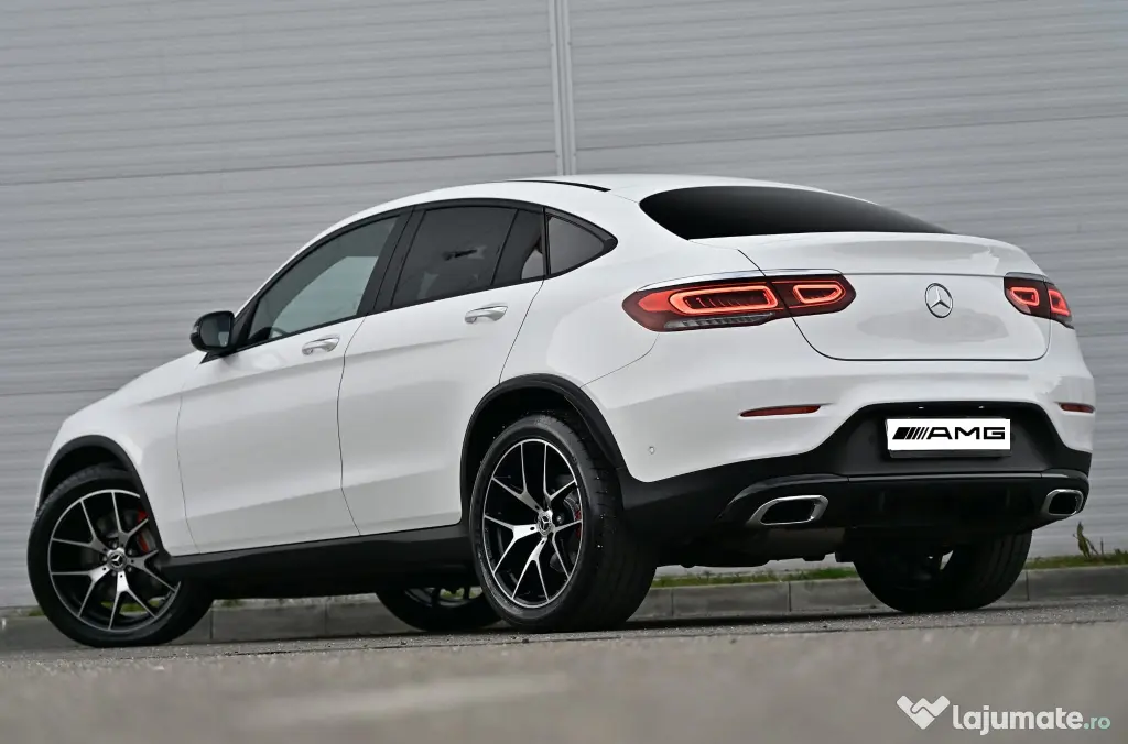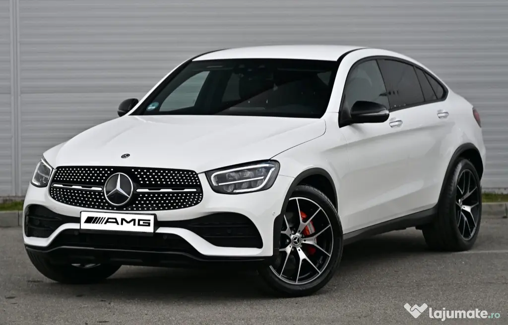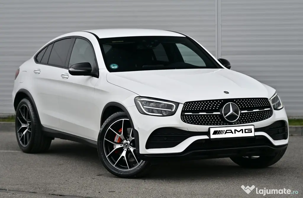 Vând Mercedes-Benz GLC 300d Coupé 4MATIC, model 2020, SUV Coupé premium, motor diesel 2.0 OM654 – 245 CP, tracțiune integrală și cutie automată 9G-Tronic (9 viteze). Mașina este foarte bine echipată, cu pachet AMG interior + exterior și Night Package.