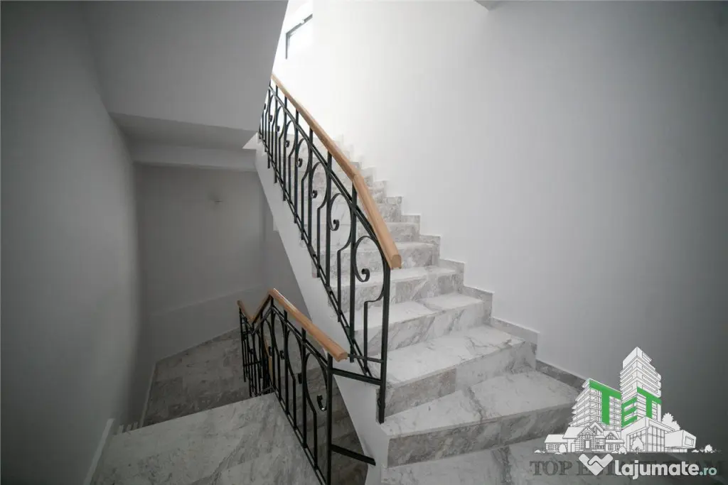 - Balustrada metalica neagra cu mana curenta de stejar;