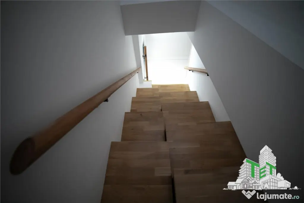 - Balustrada metalica neagra cu mana curenta de stejar;