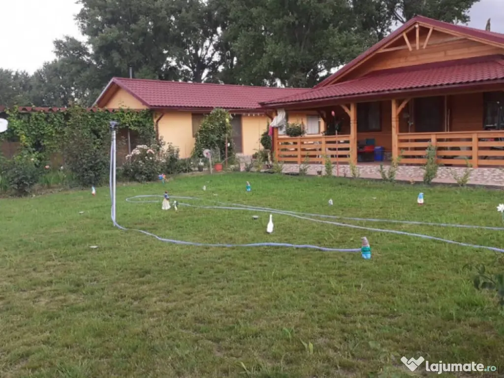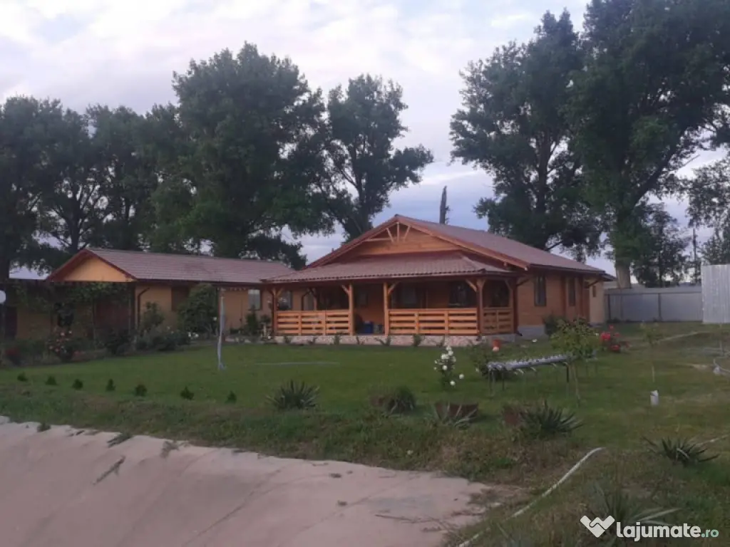 Dobrogea Imobiliare va prezinta spre vânzare o casa de lemn cu deschidere directa la lac de 43m, construita în anul 2021 în localitatea Horia, județul Tulcea cu suprafață teren 3000mp. Locuința se afla la 1.5km de sat pe marginea lacului și are si proiect cu toate aprobările pentru microferma piscicolă. Casa este construita din structura de lemn de 10cm (brad+pin, foarte calduroasa iarna si racoroasa vara) cu o suprafață de 100mp și o terasa acoperita de 27mp, dispune de 2 dormitoare, living cu bucatarie, hol, 1 baie mare cu cada și una cu duș și pod utilizabil. Casa are încălzire prin centrala pe lemne cu calorifere de aluminiu, usa si geamuri de termopan, gresie, faianță, parchet, aer condiționat, apa calda prin panou solar și boiler electric (pe timp de iarna, apa calda vine de la centrala), supraveghere video și sonerie la poartă. Anexe construite în curte sunt o bucătărie de vara complet mobilata și utilata cu cămară (încălzire pe soba cu lemne), garaj, magazie de lemne, magazie de cereale, anexe pentru păsări și heleșteu în curte, hidrofor, 2 fose septice și 2 fântâni. Toată suprafața terenului este delimitata de garduri și dispune de pomi fructiferi, gradina amenajata cu legume, curte cu gazon și trotuare cu acces facil către orice anexă. Intrarea pe teren se face de la șosea pe o alee betonata și acoperita de o bolta de vita de vie. Energie electrică disponibila, internet și televiziune, casa se vinde semi mobilata sau la înțelegere cu persoanele interesate. Este o zona linistita cu acces rapid către Tulcea, Constanța, Măcin, Isaccea/Brăila/Galați. Prețul este de 101.000 euro negociabil. Terenul în zona se vinde la prețul de 20 euro mp. Va așteptam la vizionare! Ne puteți vizita la sediul nostru situat pe str. Pacii, nr. 6 (la parterul hotelului Select) pentru consultanta gratuita Pentru mai multe oferte vizitați site-ul www.Dobrogea-Imobiliare.ro sau pagina https://www.facebook.com/agentia.dobrogea.9 Id intern: P2175 Număr Băi: 2 Comision cumpărător: 2% Climă Apă Curent