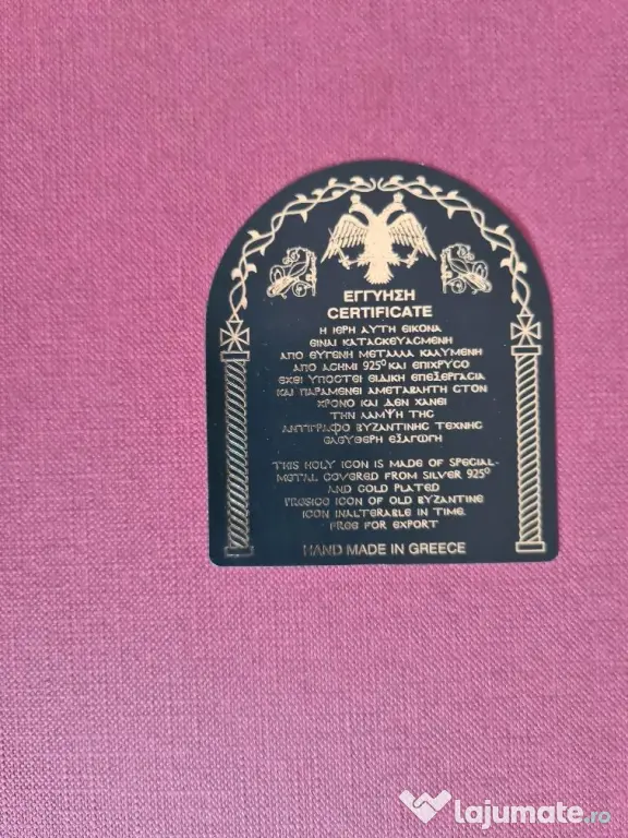 Icoana Argintata ,lucrata manual, cu certificat de autenticitate, cu o superba rama filigranata , sticla de protectie, impact vizual de exceptie. Ideala pentru un cadou deosebit.