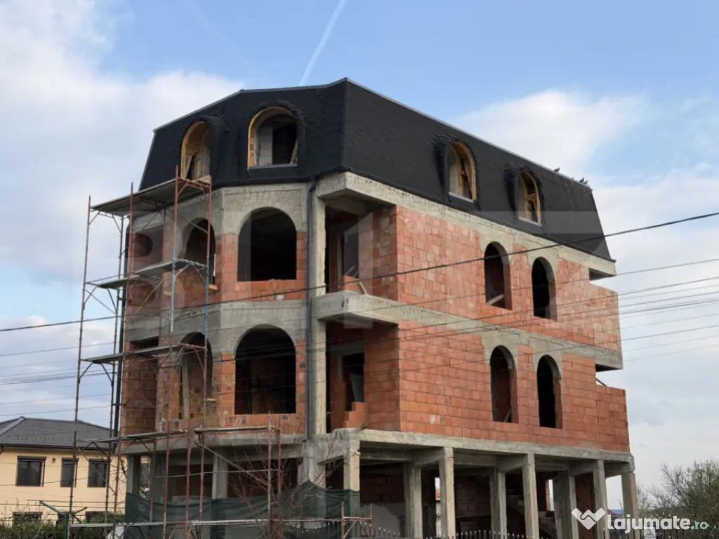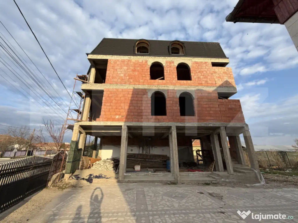 Blitz vă propune spre vânzare o pensiune aflată la stadiul de roșu, ideală pentru investiție, situată în zona Drăgoieni, la doar câteva minute de oraș. Imobilul este construit pe regim de înălțime P+2+M și dispune de o suprafață construită de 400 mp, respectiv o suprafață utilă de aproximativ 300 mp. Compartimentarea este gândită eficient pentru activități turistice, fiind prevăzute 9 camere spațioase, fiecare cu baie proprie, oferind astfel confort și intimitate viitorilor oaspeți. Proprietatea reprezintă o oportunitate excelentă pentru dezvoltarea unei afaceri în domeniul turismului, având un potențial ridicat datorită poziționării într-o zonă liniștită, dar în același timp aproape de oraș. Construcția la stadiu de roșu oferă avantajul personalizării finisajelor și amenajărilor după propriile preferințe sau cerințele pieței. Ideală atât pentru investiție, cât și pentru dezvoltarea unei afaceri de succes! Cod ofertă / ID BLITZ: P168203 Id intern: P168203 Stadiu construcţie: Finalizat Număr încăperi: 9