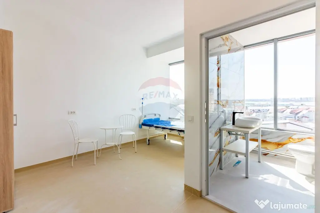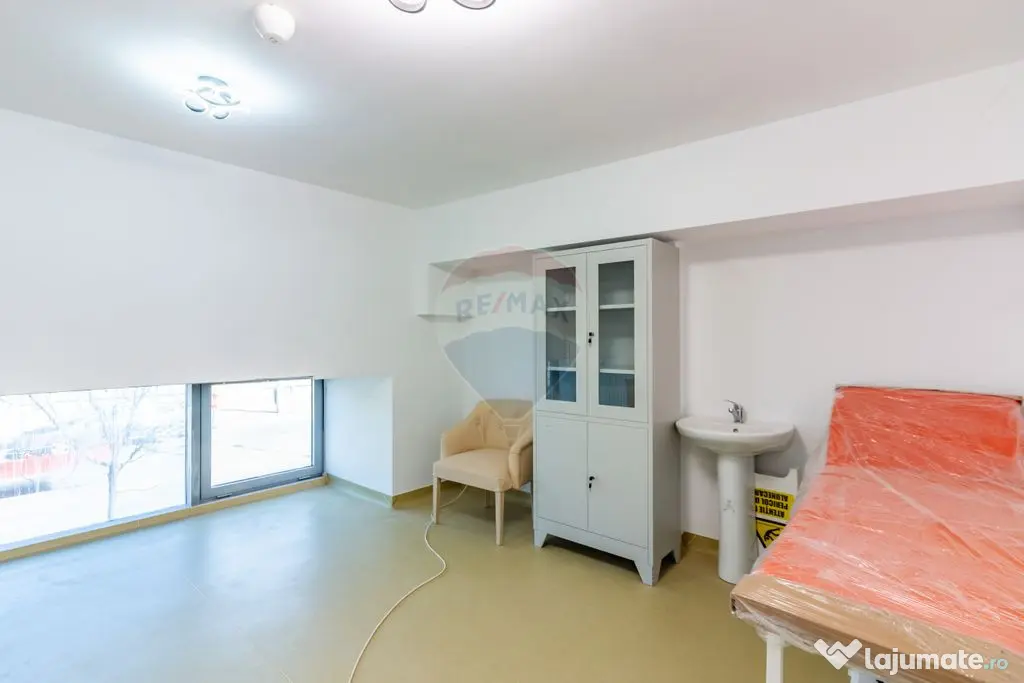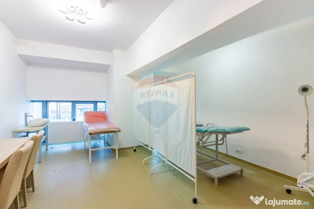 Cu o suprafață construită de aproximativ 2.955 mp și regim de înălțime subsol, parter și 5 etaje, imobilul este compartimentat eficient, respectând circuitele funcționale necesare operării în domeniul medical și social. Zona de policlinică, desfășurată pe parter și mezanin, este complet echipată și pregătită pentru funcționare, incluzând cabinete specializate, spații de tratament, sterilizare și suport, precum și zone dedicate fluxului de pacienți și personalului medical, ceea ce permite activarea rapidă a serviciilor sau subînchirierea către specialități multiple.