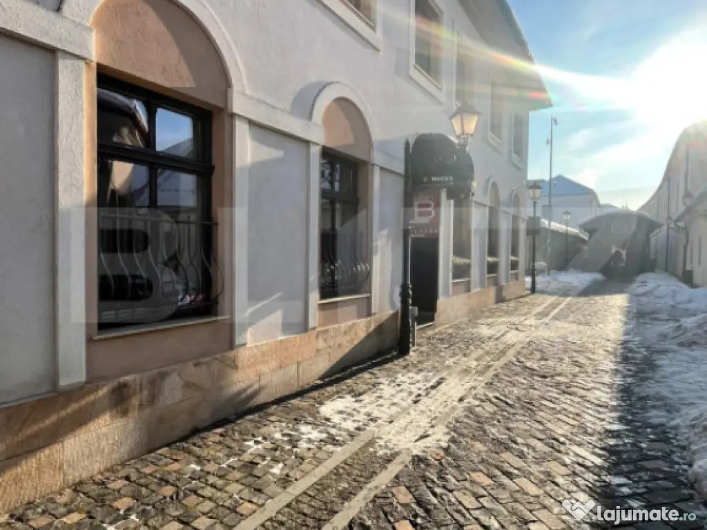 BLITZ EXCLUSIVE va prezinta spre achiziție o proprietate imobiliară de excepție, situată pe unul dintre pasajele emblematice ale centrului istoric din Bistrița. Proprietatea reprezintă o investiție strategică, combinând un Bistro cu un istoric de peste 15 ani, un apartament spațios și o zonă de birouri, totul într-o clădire monument restaurată și eficientizată energetic. 1. Spațiul Comercial (Bistro & Terasă) Afacerea se vinde complet utilată și mobilată, beneficiind de o clientelă formată și fluxuri operaționale optimizate. Suprafață utilă: cca. 400 mp, dispusă pe parter și etaj. Configurație interioară: 4 încăperi de servire cu design autentic, bucătărie profesională complet echipată, magazie, spații tehnice și grupuri sanitare moderne pentru clienți. Pivniță: Spațiu ideal pentru cramă sau depozitare specializată. Terasă Interioară: Suprafață de 75 mp, amenajată integral, oferind o atmosferă intimă și protejată, unică în zona centrală. 2. Componenta Rezidențială și Administrativă Clădirea oferă versatilitate prin spațiile private situate la nivelurile superioare: Apartament de protocol/locuință: 4 camere , bucatarie, 2 bai, cu acces separat, cu finisaje ce respectă caracterul imobilului. Mansardă: Amenajată integral ca spațiu de birouri, ideală pentru managementul afacerii sau activități de consultanță/servicii. 3. Infrastructură și Eficiență Energetică Proprietatea a fost renovată integral, punându-se accent pe reducerea costurilor de mentenanță și sustenabilitate: Sistem Fotovoltaic: Capacitate de 16 kW cu sistem de stocare de 15 kW, având statut de proconsumator (reducere masivă a costurilor cu energia). Climatizare și Încălzire: Centrale termice pe gaz performante; clădire izolată termic conform standardelor actuale. Locație: Situație privilegiată în zonă protejată istoric, cu flux pietonal constant. 4. Argumente de Investiție Continuitate: Brand local cu peste 15 ani de experiență și profitabilitate demonstrată. Stare „la cheie”: Nu necesită investiții suplimentare în renovări sau dotări. Multifuncționalitate: Permite exploatarea simultană a trei segmente: HoReCa, Rezidențial și Office. Detalii Suplimentare și Vizionări: Pentru o prezentare detaliată a indicatorilor de business și programarea unei vizionări, vă rugăm să ne contactați Cod ofertă / ID BLITZ: P162251 Id intern: P162251 Număr niveluri imobil: 2 Număr Băi: 5 Curent Apă Canalizare Gaz