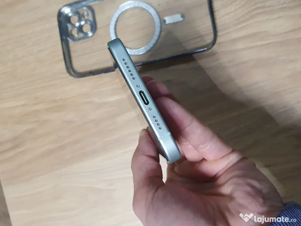 Vand iPhone 15 Plus cu 128 GB, culoare Mint/Lime.