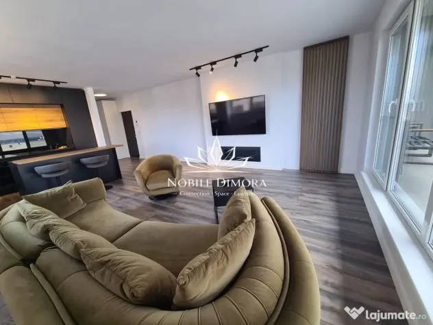 Se ofera spre inchiriere un apartament modern in zona Aradului, cu o suprafata de 70 mp, situat la etajul 9/9 si beneficiind de o terasa de 45 mp cu priveliste deosebita. Apartamentul este compartimentat in living cu bucatarie open space, dormitor matrimonial, baie si spatii de depozitare.
