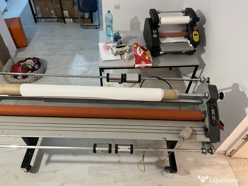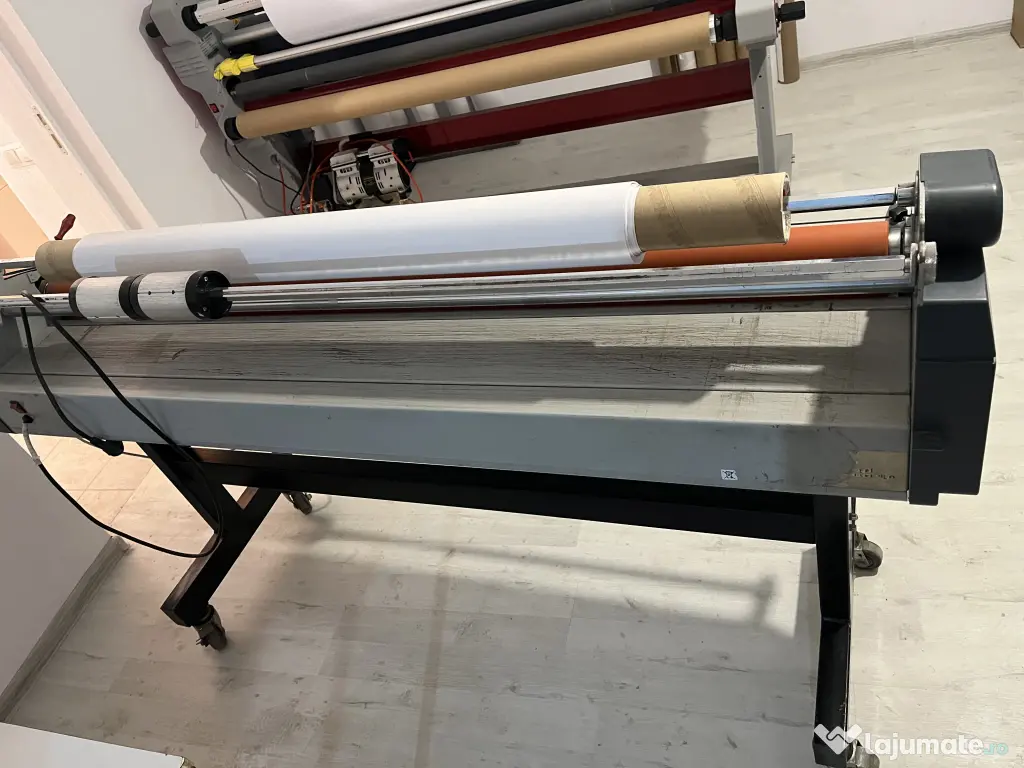 Laminatorul este functional si se vinde exact cum se vede in poze. Ideal pentru tipografii sau productie publicitara.