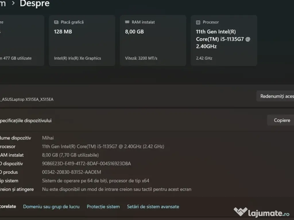 Sistemul de operare este cu licenta si activat . Detalii despre configuratie gasiti in imaginile atasate.