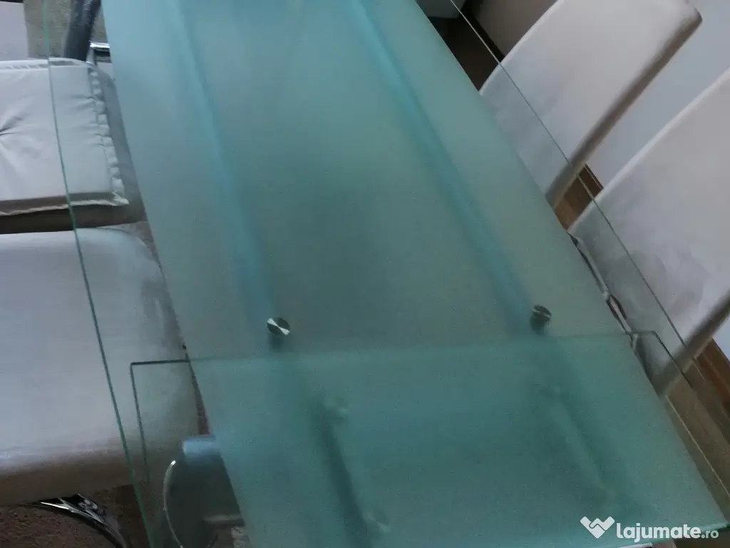 Masa de sticla extensibila, import Germania, în stare foarte bună. Înălțime 75, lățime 90-81, lungime 1,60 fără extensii. Se poate vedea în sf Ilie nou Suceava. Nu asiguram transport