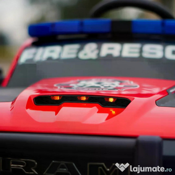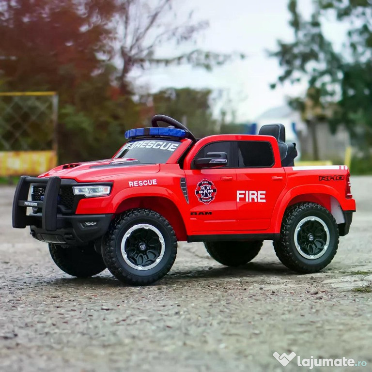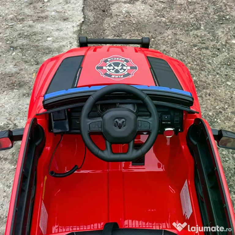 Benficiati de GARANTIE 24 Luni Transport GRATUIT Pentru comenzi si info contactati-ne 0729189471 Masinuta electrica pompieri, DODGE RAM 1500 RHO, 4x35W, 12V 10Ah Specificatii masinuta Dodge RAM 1500 RHO cu echipare PREMIUM Scaun tapitat cu piele ecologica, confortabila pentru 1 copil Roti moi din cauciuc eva, silentioase si confortabile 4 Motoare electrice de putere 35W fiecare, total 140W 12V Echipat cu BATERIE reincarcabile 12V 10Ah Efecte sonore autentice unei masini de politie Sirena si microfon, autentice unei masini de politie Maneta Schimbator directie , mers inainte sau inapoi Music player echipat cu comexiun Mp3 port USB, slot Aux Pornire/Oprire din Cheie Comutator High / Low speed, selector putere motoare Compartiment depozitare Volan multifunctional cu claxon si comenzi muzica Siste de iluminat cu LED 2 usi cu deschidere, siguranta EFECTE LUMINOASE Pornire LENTA pentru confortul copilului Oprire LENTA pentru confortul copilului Produsul include INCARCATOR si TELECOMANDA CONTROL PARENTAL prin telecomanda de la distanta 3 nivele de viteza selectabile din telecomanda Masinuta mai poate fi ghidata manual de catre copil Indicator nivel baterie Comutator pentru activare/ dezactivare sistem iluminat Conexiune Mp3 prin cablu jack Centura de siguranta cu 3 prinderi Greutate proprie 19 Kg Greutate total admisa 49 Kg Produs recomandat pentru un copii 36-84 Luni Dimensiunile produsului montat 119 x 68 x 57 cm