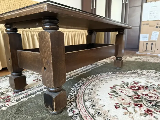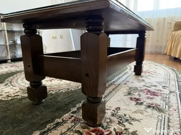 Vând măsuța de cafea clasică din lemn masiv, culoare maro. Măsuța are o vârsta aproximativă de 30 de ani.