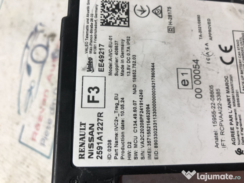 Modul radio Renault Megane 5 - Electric 2024. Cod(uri): 2591A1227R. Piesele comercializate sunt originale, provenite din dezmembrari. Dispunem de o gama larga de piese multimarca. Piesele sunt verificate inainte de a fi puse spre vanzare. In caz de neconformitate piesa se poate returna. Va rugam sa verificati disponibilitatea pieselor telefonic. Trimitem in tara prin curier. Marcă: Renault Producător: Renault