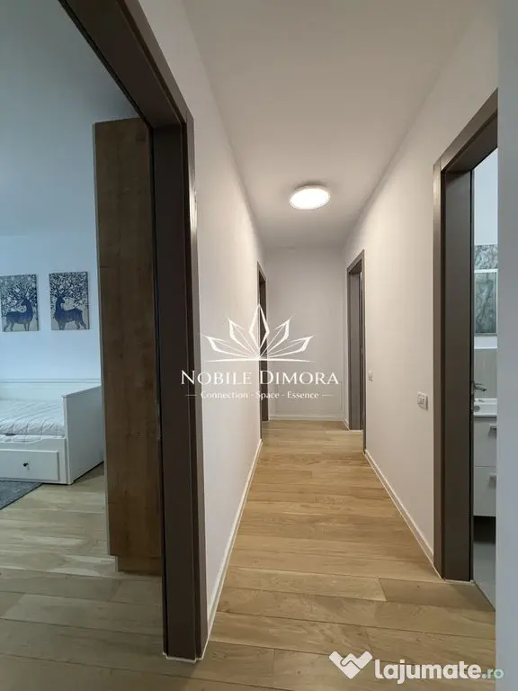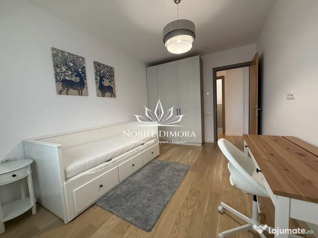 Este compartimentat in living luminos cu ferestre mari, doua dormitoare, bucatarie si bai complet echipate, cu finisaje de calitate si balcon generos. Dispune de incalzire in pardoseala cu termostatare individuala pe fiecare incapere si aer conditionat. Include loc de parcare subteran.