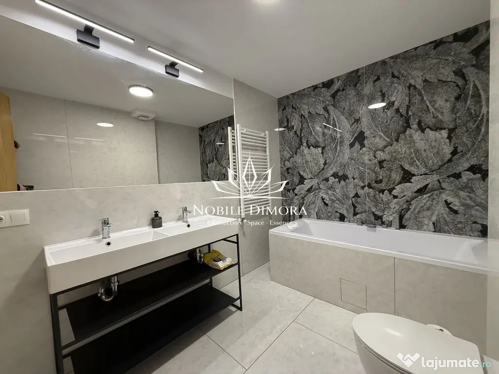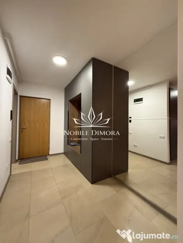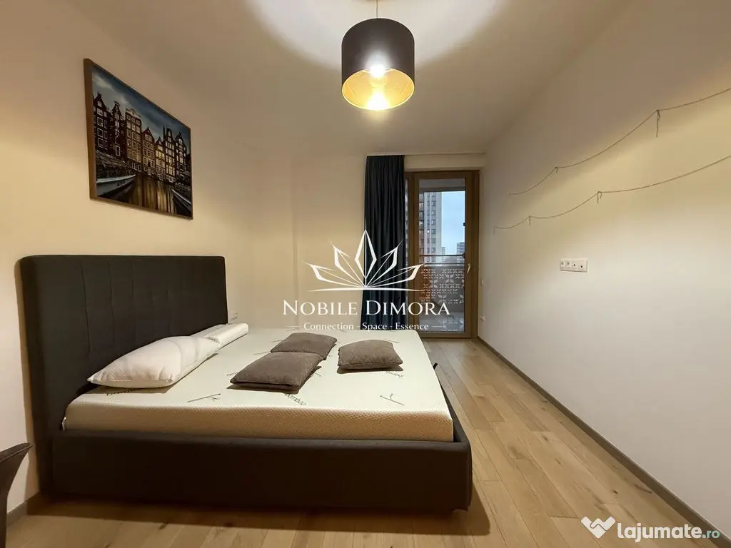 Este compartimentat in doua dormitoare, living open space si doua bai, avand balcon de 16 mp cu acces din toate camerele. Se inchiriaza complet mobilat si utilat, dispune de incalzire in pardoseala cu termostat individual in fiecare incapere si aer conditionat. Include un loc de parcare subterana inclus in pret