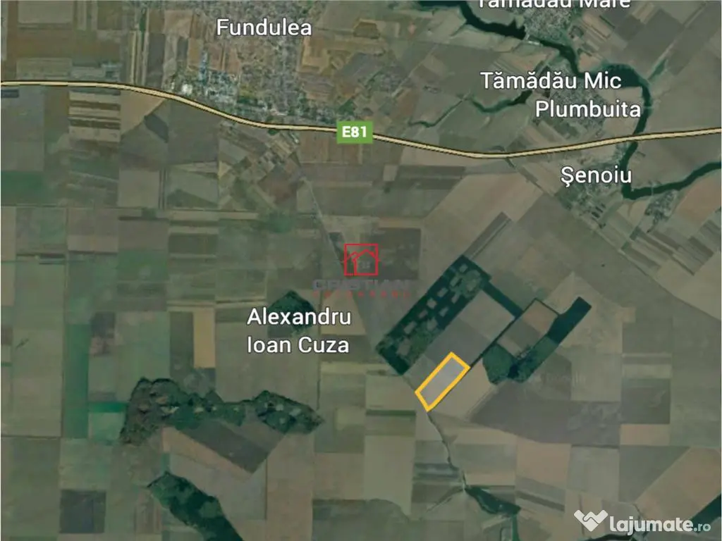 Vanzare teren Fundulea - A2, Calarasi. Proprietatea este compusa din teren extravilan suprafata 315.000mp(31.5ha), deschidere 350ml la drum judetean(asfalt), localizat la circa 4.5km de nodul rutier Fundulea - A2. Terenul se preteaza pentru construire parc logistic/fotovoltaic. Pret vanzare - 1.900.000euro COMISION AGENTIE 3%
