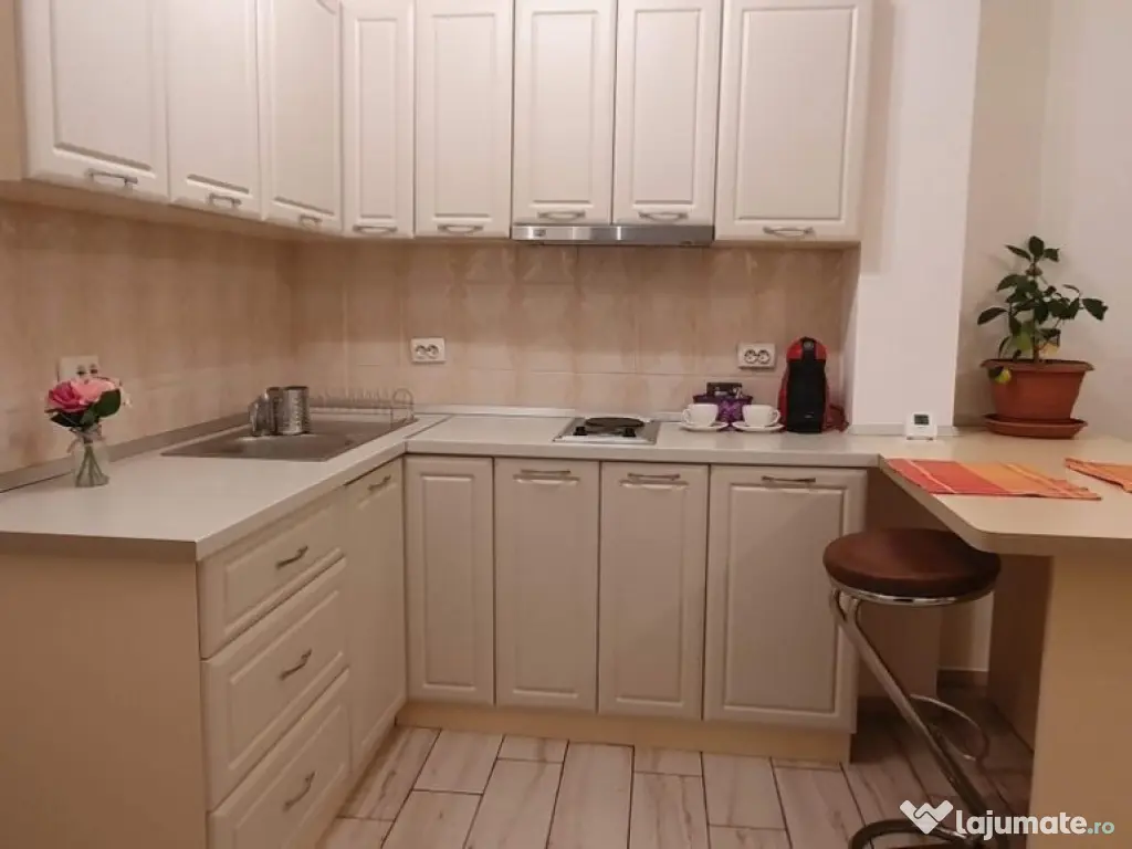 Renovat, complet utilat si mobilat, usa metalica, zona buna (in apropiere de statie de autobuz, supermarket, scoala ). Suprafata utila este de 34 mp , parter. Confort: 1 Tip imobil: Bloc de apartamente