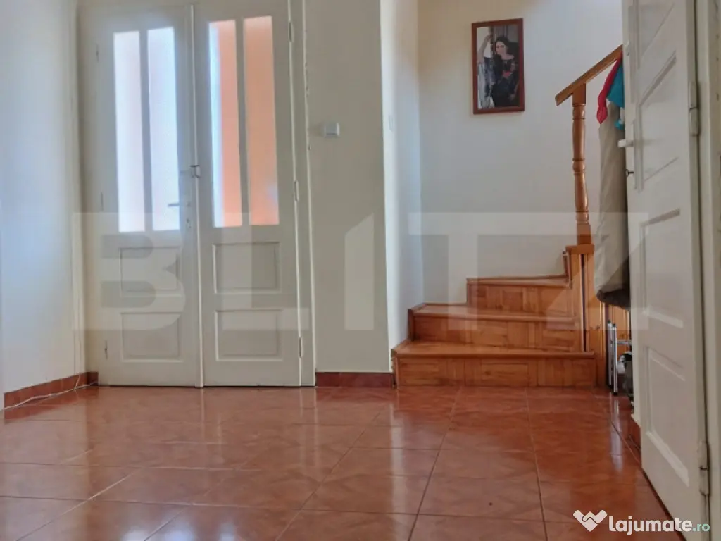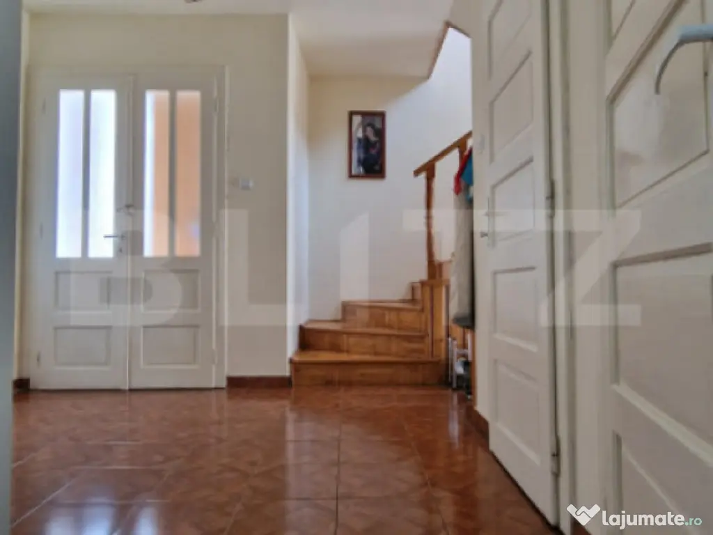 Cauti o casa pentru familia ta? O investitie de viitor? Blitz Imobiliare Timisoara vine in ajutorul tau! Într-una dintre cele mai frumoase zone centrale ale Lugojului, unde liniștea străzilor vechi se împletește cu pulsul vieții urbane, te așteaptă o casă din anii ’90 – o construcție solidă, temeinică, făcută să dureze. Ridicată pe un teren de 241 mp, casa impresionează prin structura sa solidă – fundație și planșeu din beton, pereți groși și o dispunere pe subsol, etaj și pod, oferind atât confort, cât și funcționalitate. Curtea are acces auto pentru două mașini, iar anexa tip garaj din spate, împărțită astăzi în trei zone, deschide multiple posibilități: spațiu de lucru, atelier, mic birou sau chiar revenirea la o destinație comercială (SAD). Parterul înalt te întâmpină cu un antreu generos, ce face legătura cu subsolul – format din două încăperi spațioase, perfect pentru depozitare sau un mic wine cellar. Tot aici regăsim bucătăria închisă, o baie cu duș, un living amplu luminat natural, cu teracotă – punctul de căldură și suflet al casei – și o cameră suplimentară ce poate fi birou sau dormitor de oaspeți. Scara din lemn masiv te conduce către etajul plin de lumină, unde un spațiu deschis te întâmpină la capătul scărilor – ideal pentru o bibliotecă, o zonă de relaxare sau un birou cochet. Etajul continuă cu trei dormitoare, dintre care unul are acces pe balconul spațios, perfect pentru serile de vară. Baia de la etaj, cu fereastră și cadă, oferă confortul unei locuințe autentice, bine gândite. Accesul către podul generos se face din această baie, iar aici ai spațiu suficient pentru depozitare sau chiar amenajări viitoare. La interior, parchetul din lemn masiv, ușile duble din lemn și ferestrele termopan cu rulouri completează farmecul unei case solide și calde. Confortul este asigurat de centrala pe gaz și calorifere, iar pentru verile toride, de aerul condiționat deja instalat. Poziționată excelent – în proximitatea parcurilor, pieței agroalimentare și centrului orașului – casa oferă tot ce ai nevoie la câțiva pași distanță. Este locuința ideală pentru o familie care caută un spațiu cu suflet, dar și o oportunitate pentru business, având infrastructura potrivită pentru un birou elegant, o pensiune urbană sau o clinică boutique. Casa se află într-o stare foarte bună, bine întreținută, având nevoie doar de un mic „refresh” estetic pentru a se alinia tendințelor actuale și pentru a deveni exact pe gustul tău. Te invit să o descoperi – pentru că unele case nu trebuie doar vizitate, ci simțite. Aceasta este una dintre ele. Cod ofertă / ID BLITZ: P157453 Id intern: P157453 Număr niveluri imobil: 1 Număr Băi: 2 Curent Apă Canalizare Gaz Climă