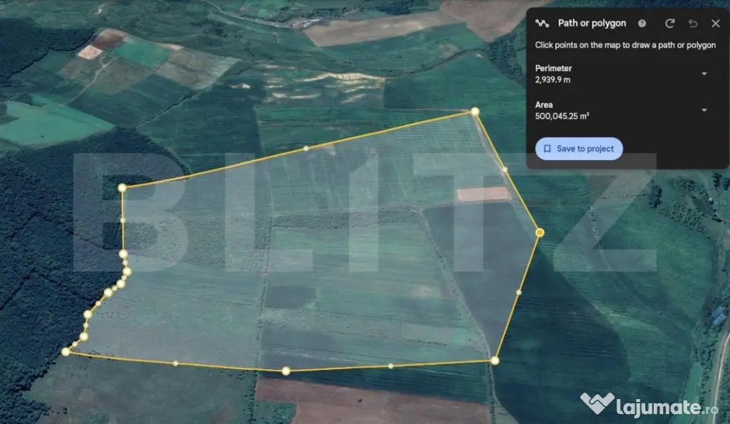 Blitz vă propune spre vânzare un teren vast de 50 Ha (500,000 mp), ideal pentru investiții în domeniul agricol sau pentru dezvoltarea unui parc fotovoltaic. Situat într-o zonă cu potențial înalt, terenul vine cu un avantaj competitiv datorită accesului la infrastructura electrică de înaltă tensiune de 110 kW în proximitate și la o sursă de medie tensiune de aproximativ 15-20 kW, asigurând astfel necesarul energetic pentru orice tip de proiect.