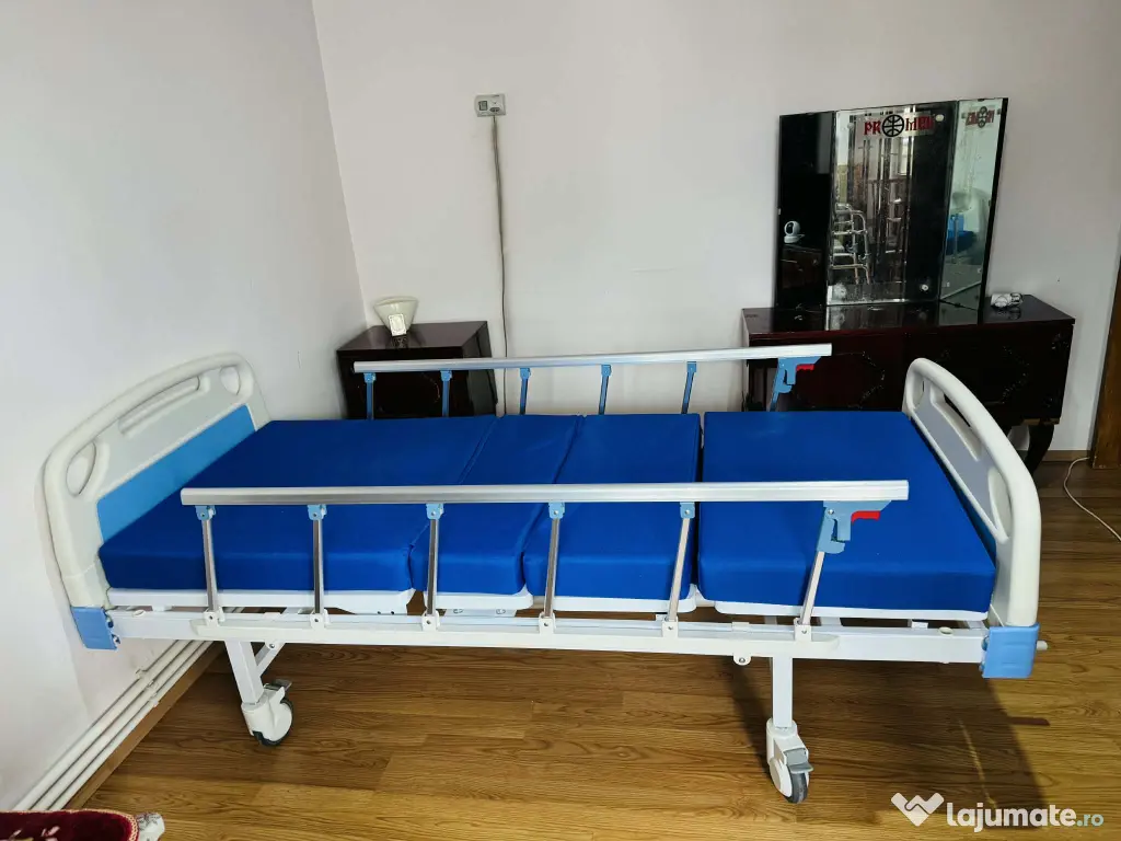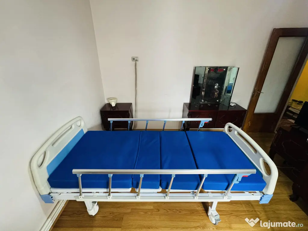 Pat medical rabatabil cu ridicare a spatelui și picioarelor , cu saltea inclusă.
